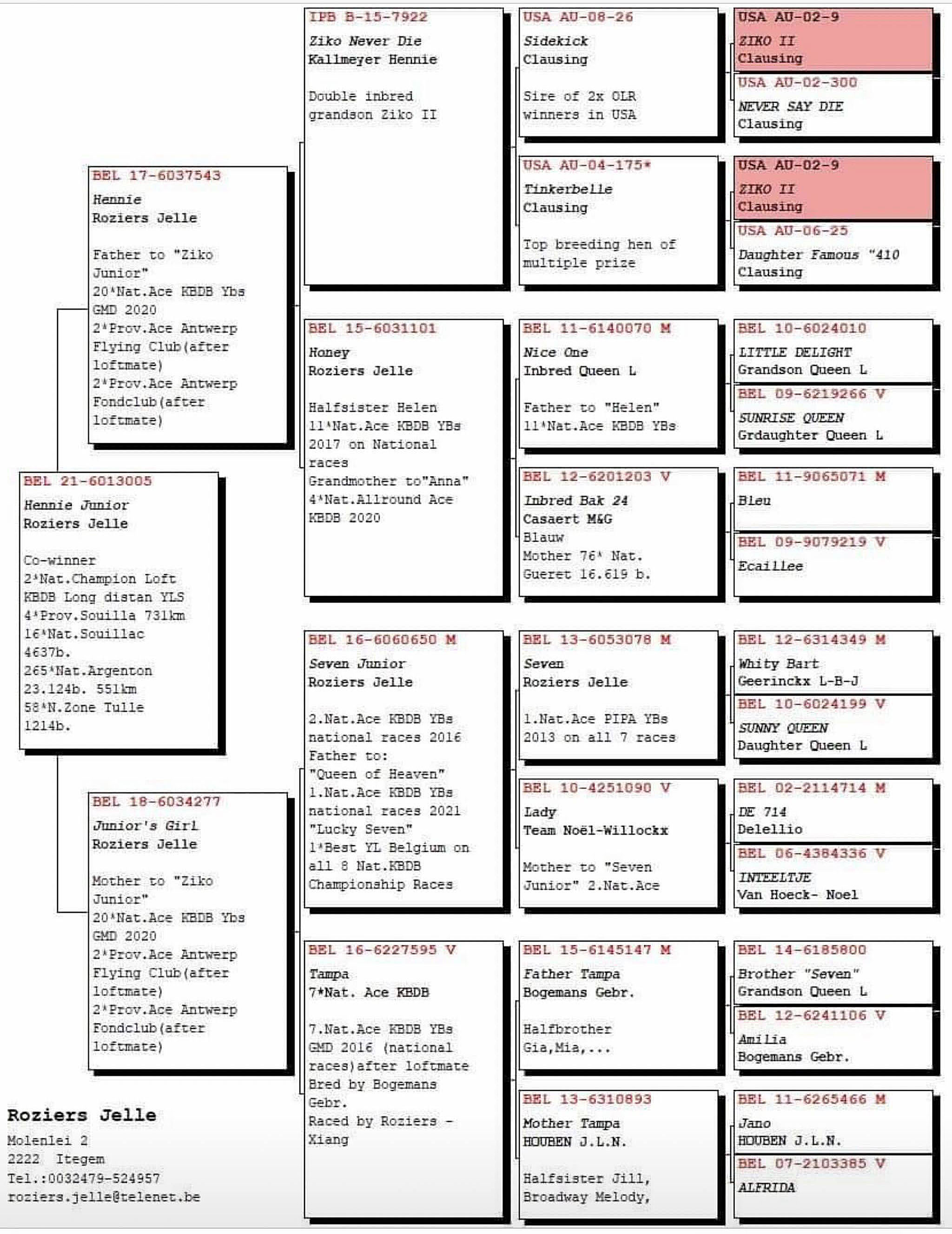 - Jelle Roziers | "Ziko Jr" | "Hennie JR" | "Hennie JR" info| "Hennie JR" ped. | "Anna" | "Anna info" | "Anna info2" | "Anna loft"| Bel 22-604712 info | Bel 22-604712| Bel 17-6037578