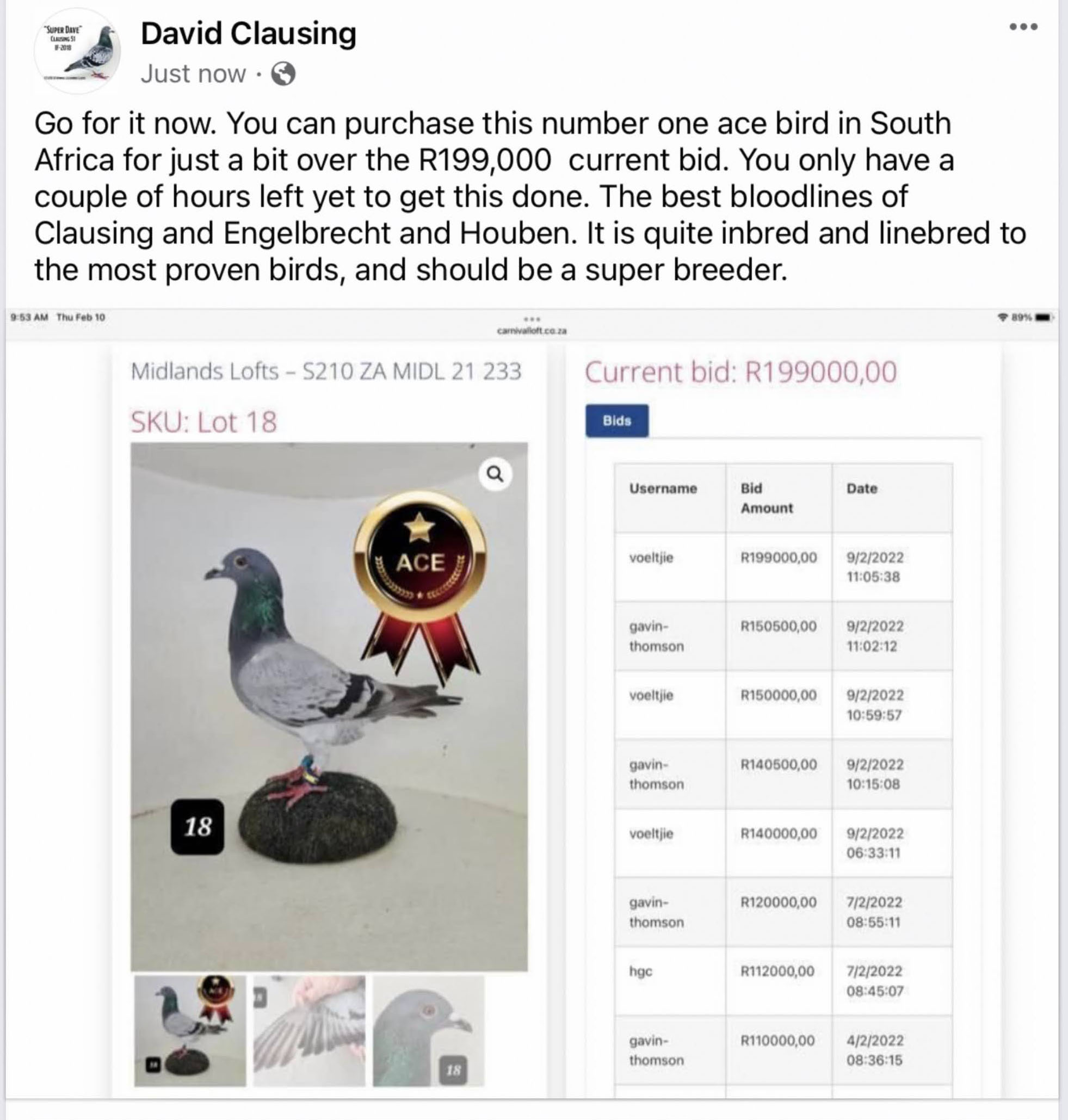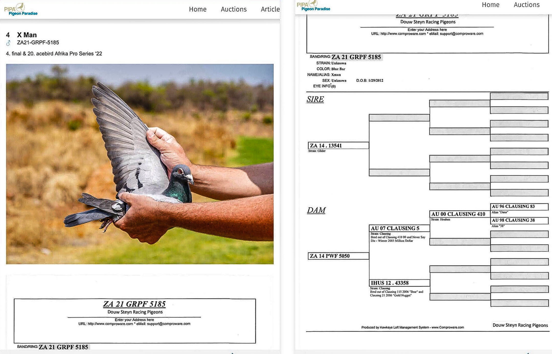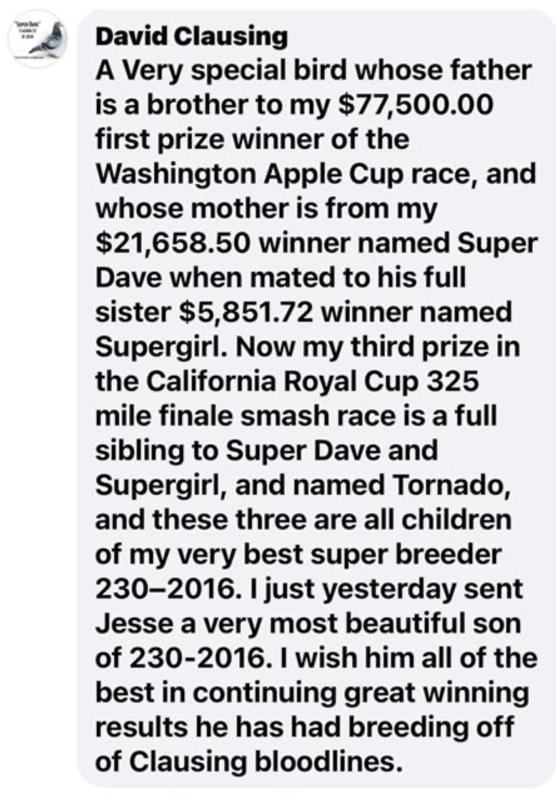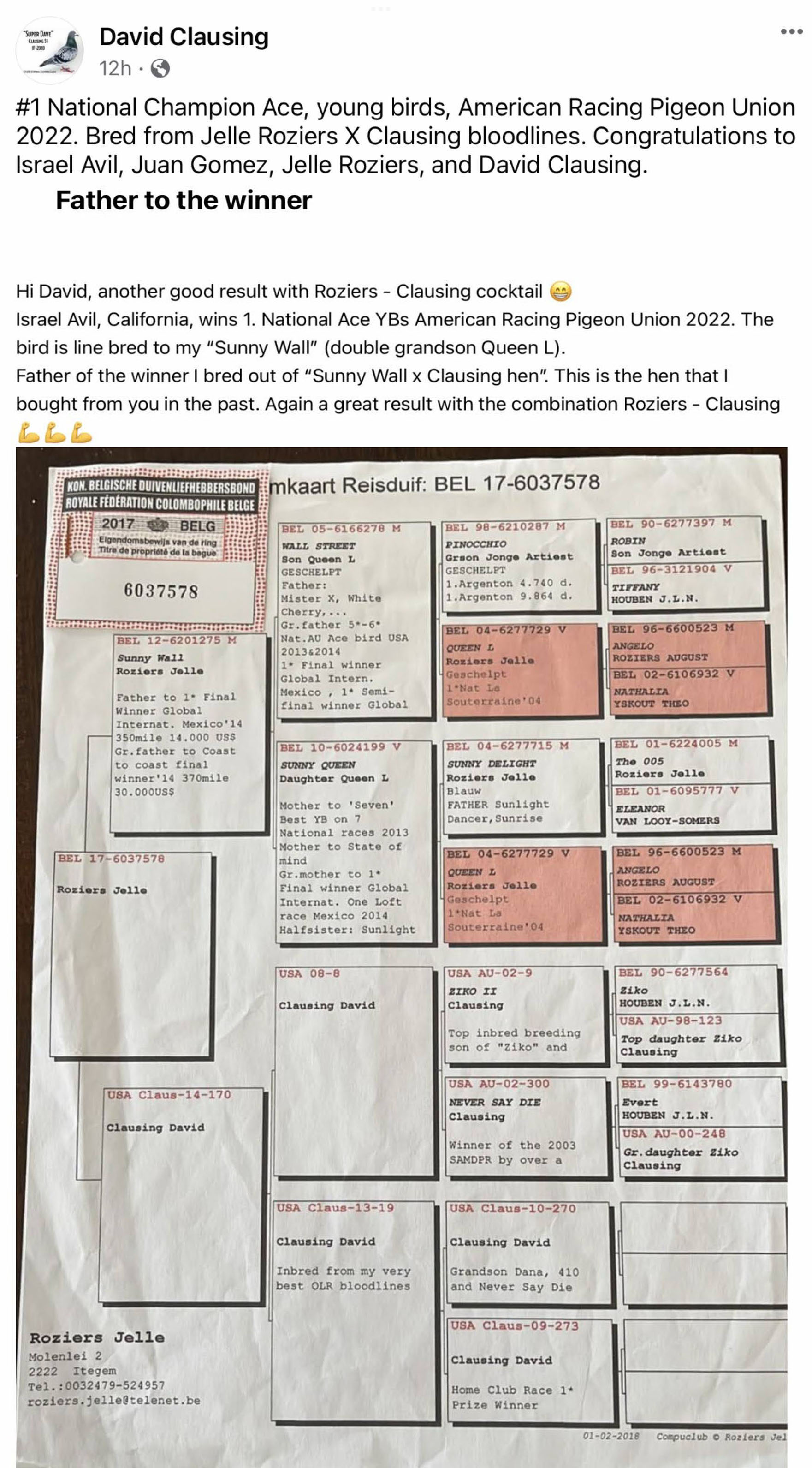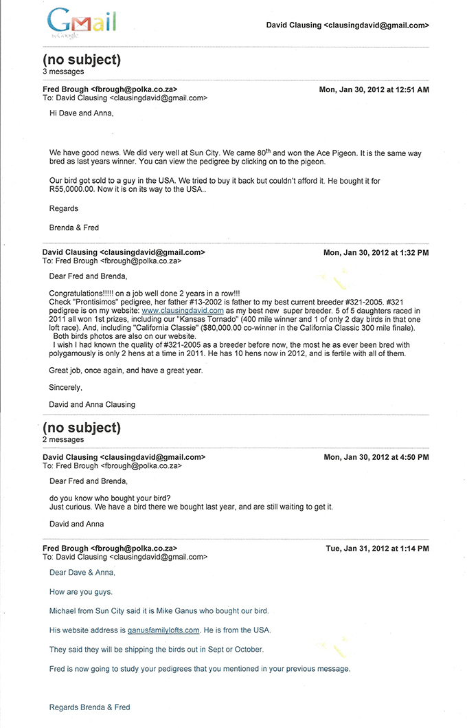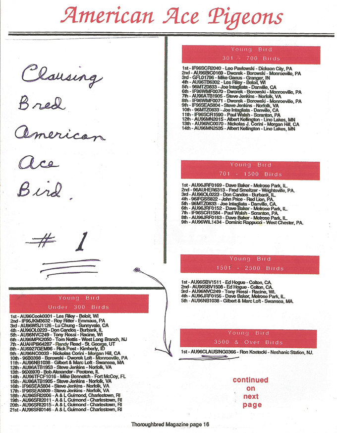 Clausing Racing Pigeons: Results are in the Breeding