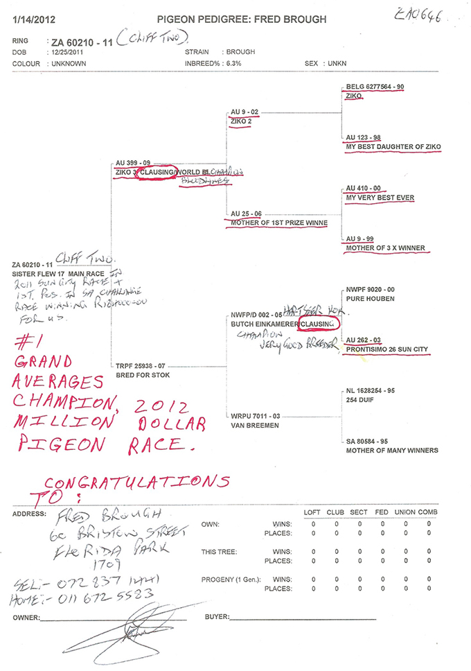 - Fred and Brenda Brough- 2012 Sun City letter | Pedigree for this wonderful bird
