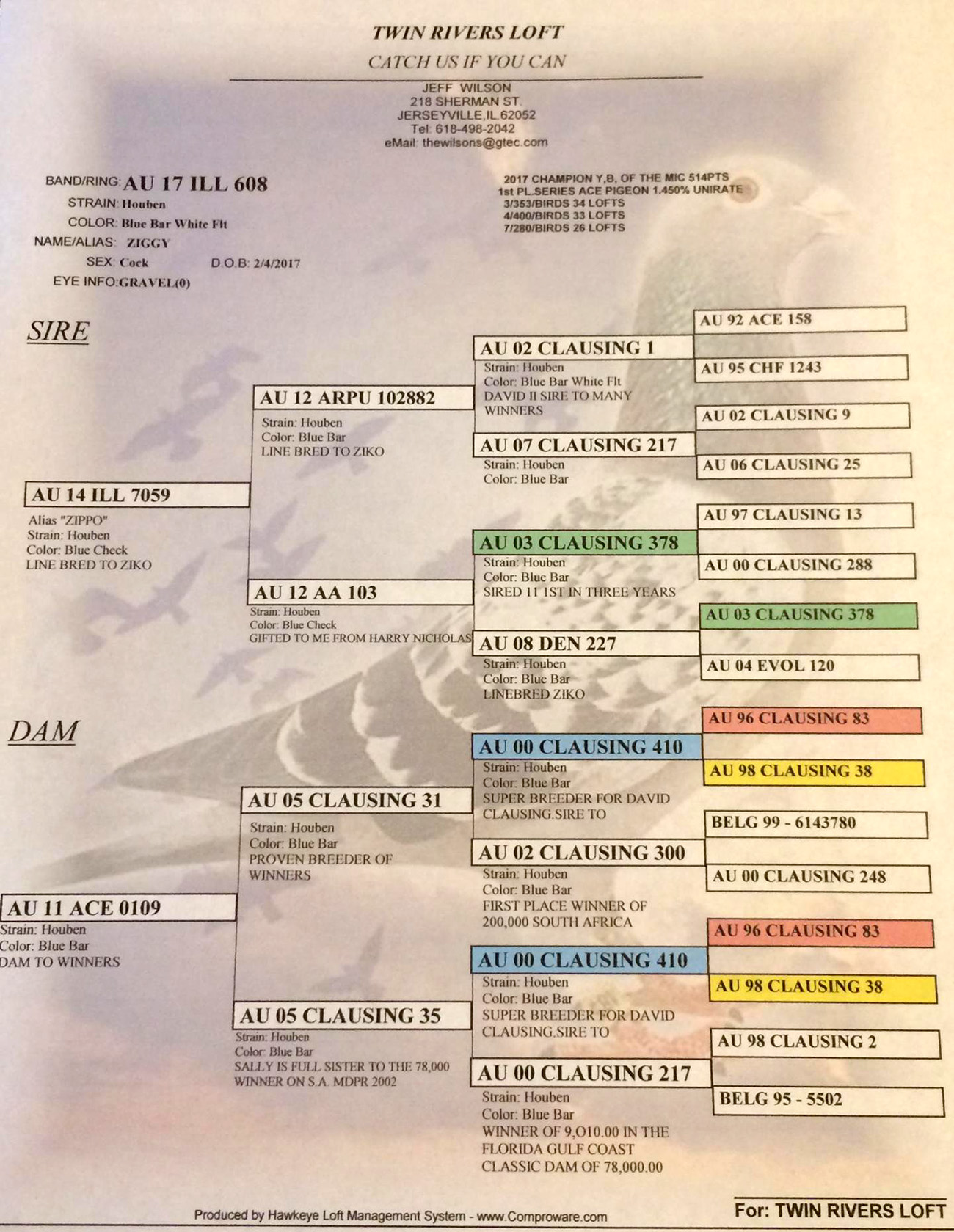 - Twin Rivers Loft Ziggy- Photo | Pedigree