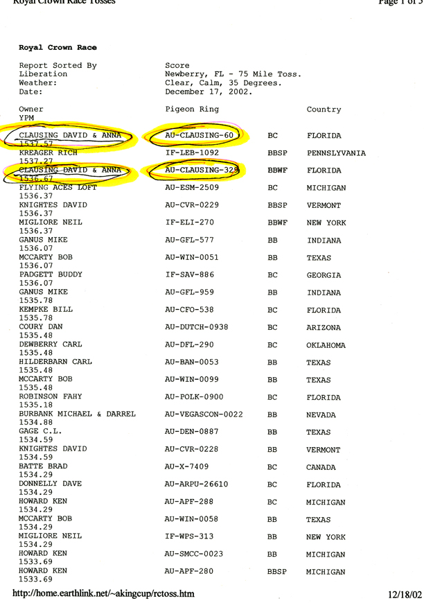 2002 Race Results
