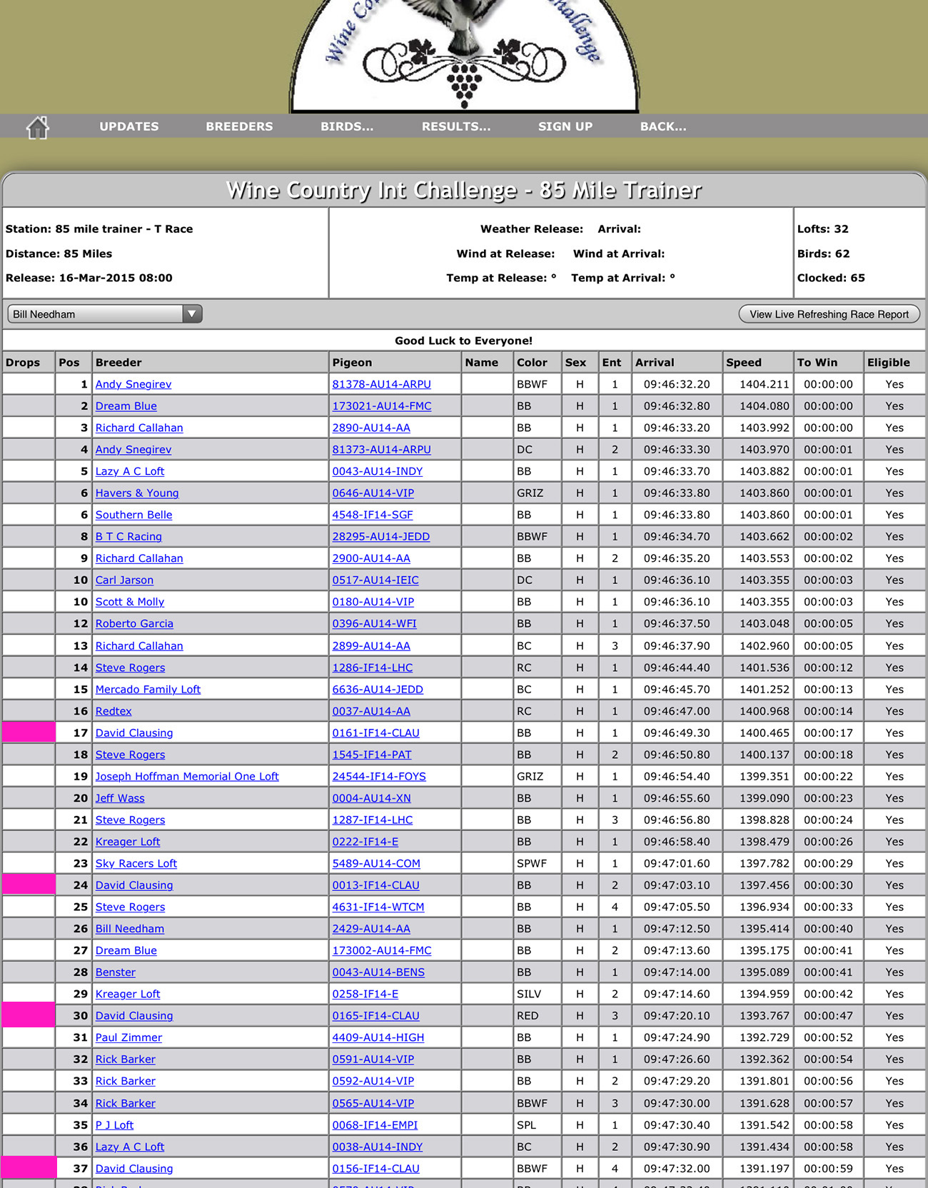 | 04/11/2015 | Wine Country Int. Challenge | Clausing 156 results |