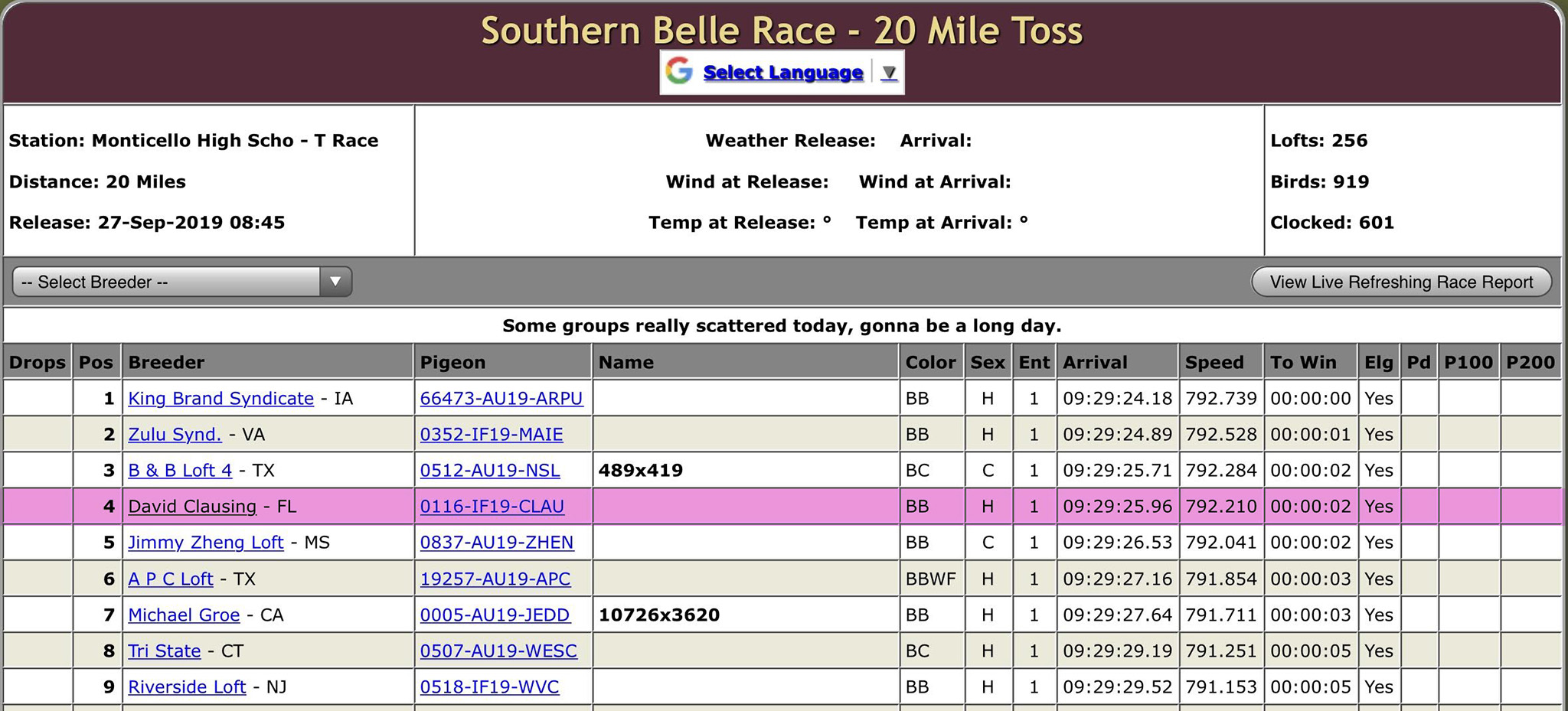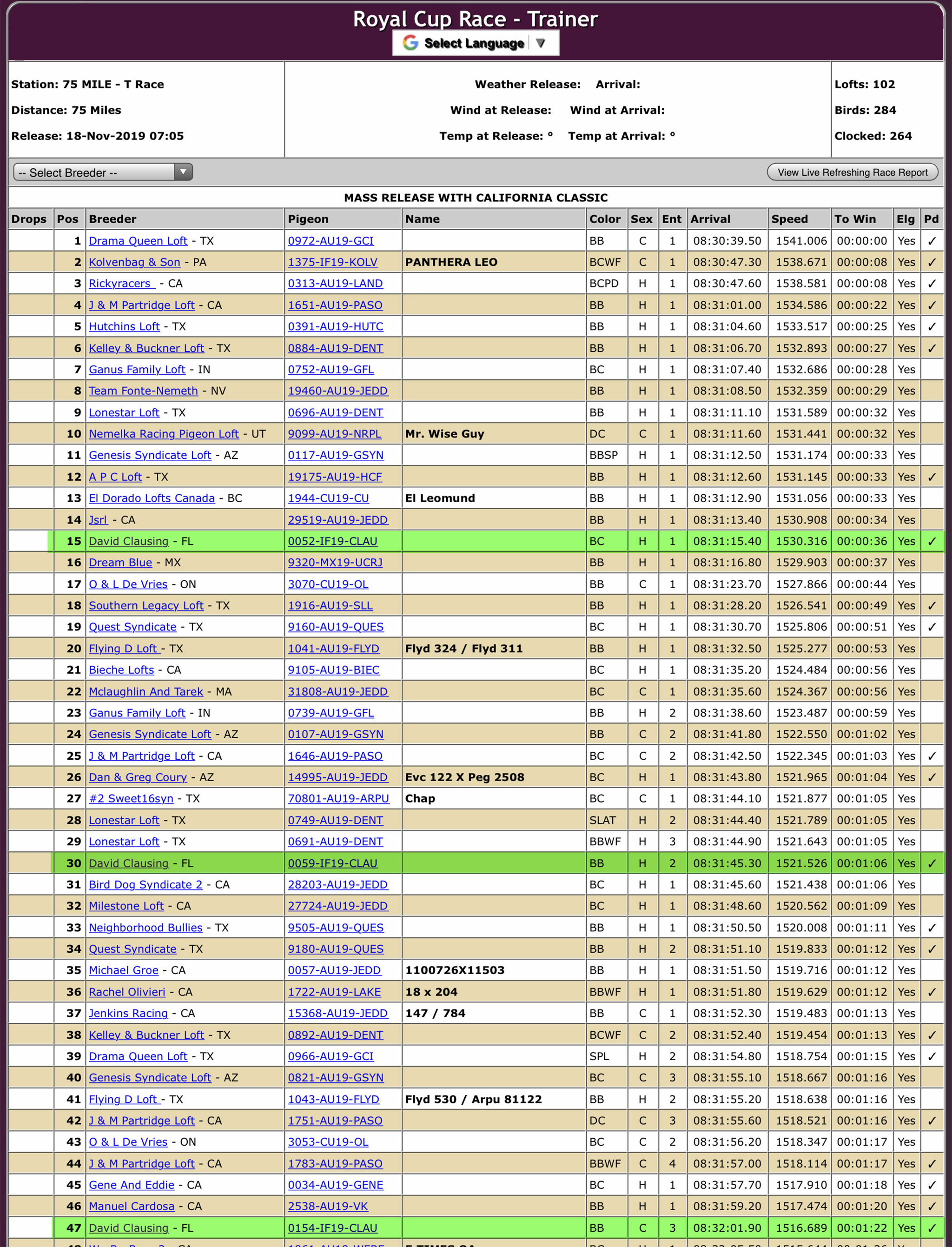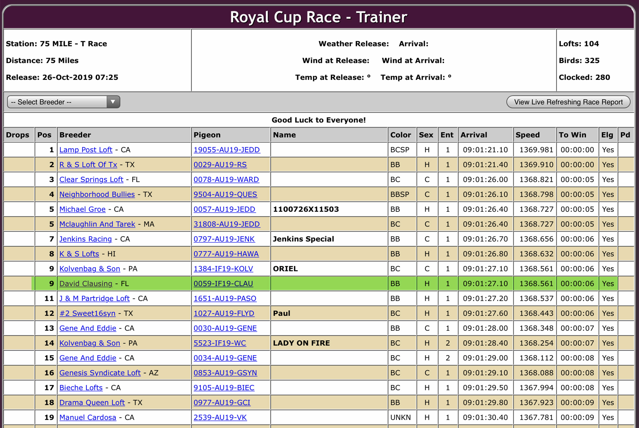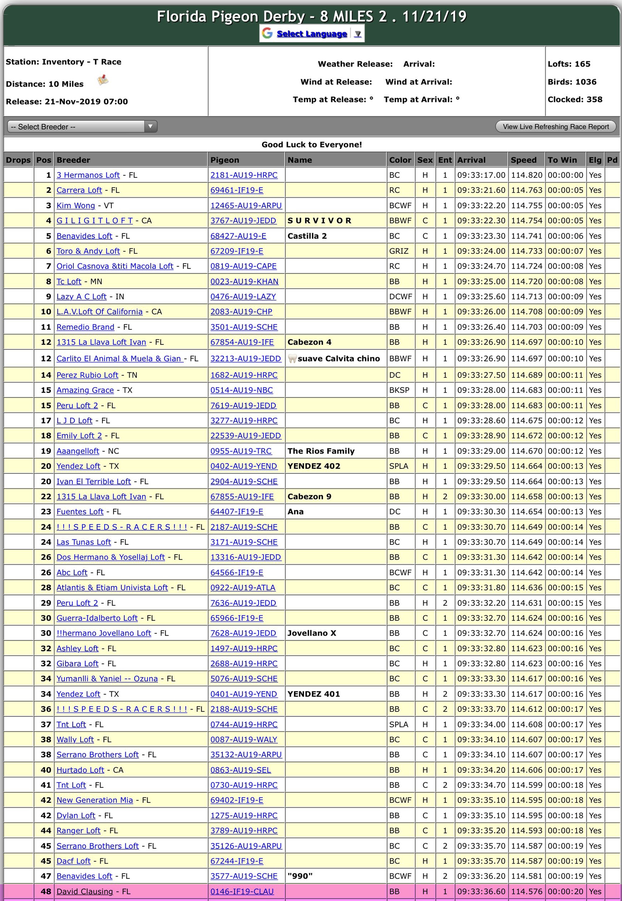 | 11/21/2019 | Florida Pigeon Derby | 112119_fdp |