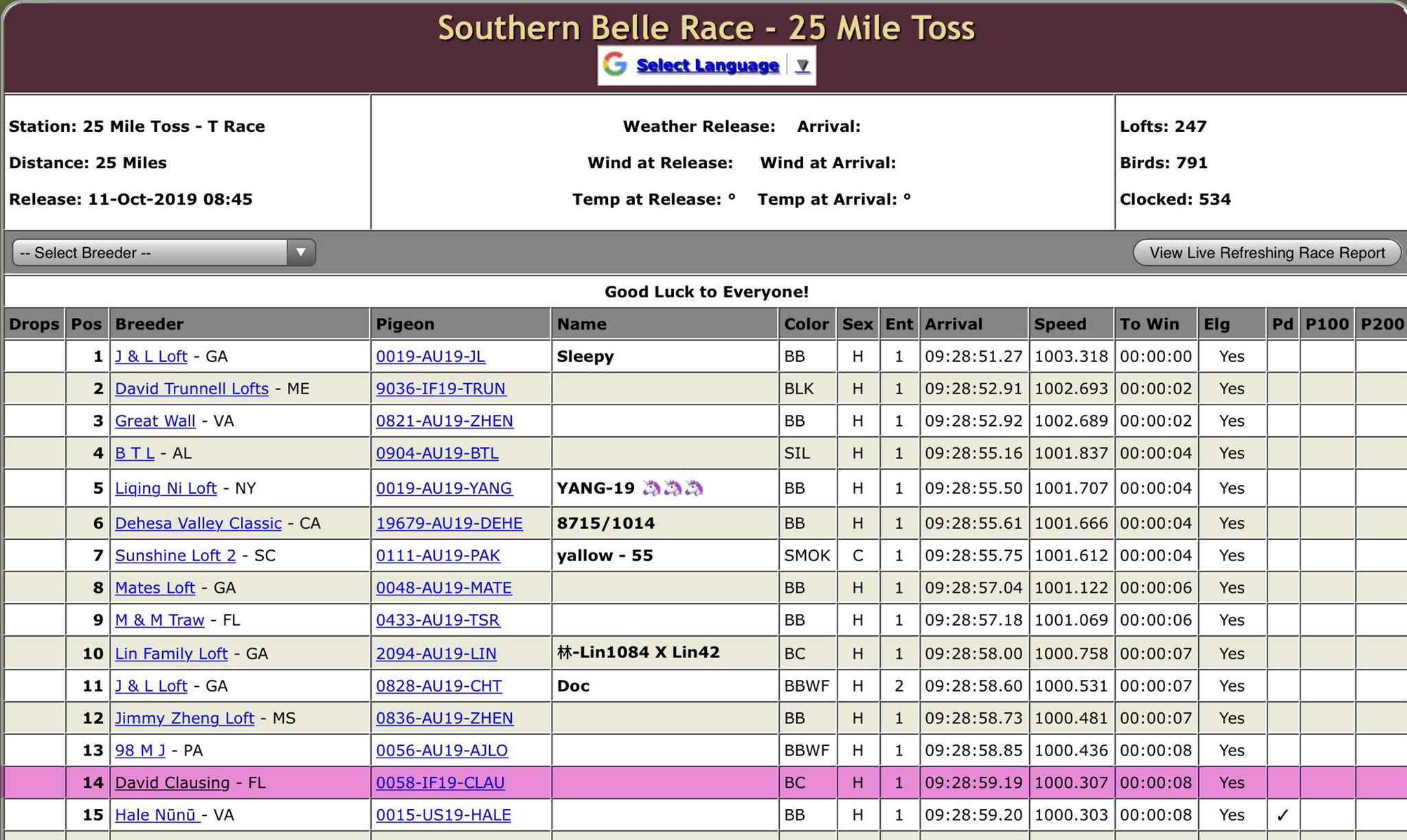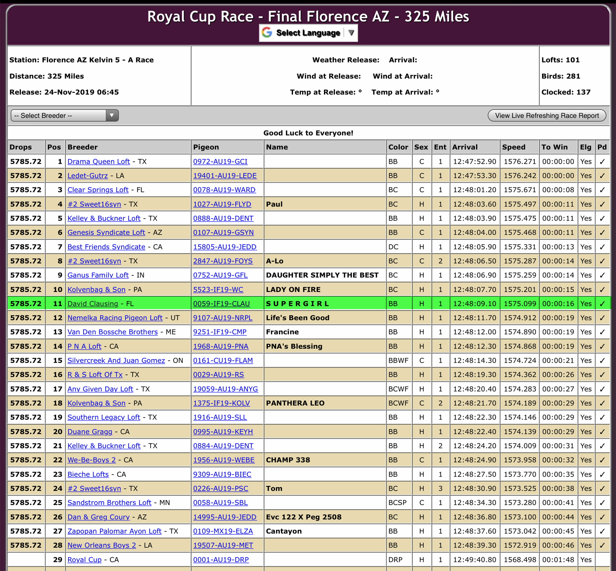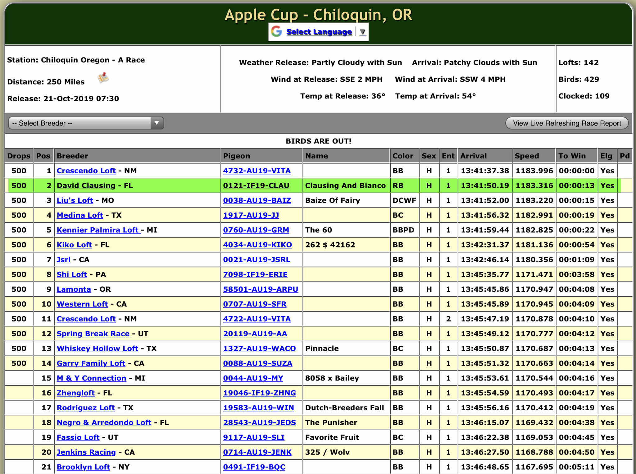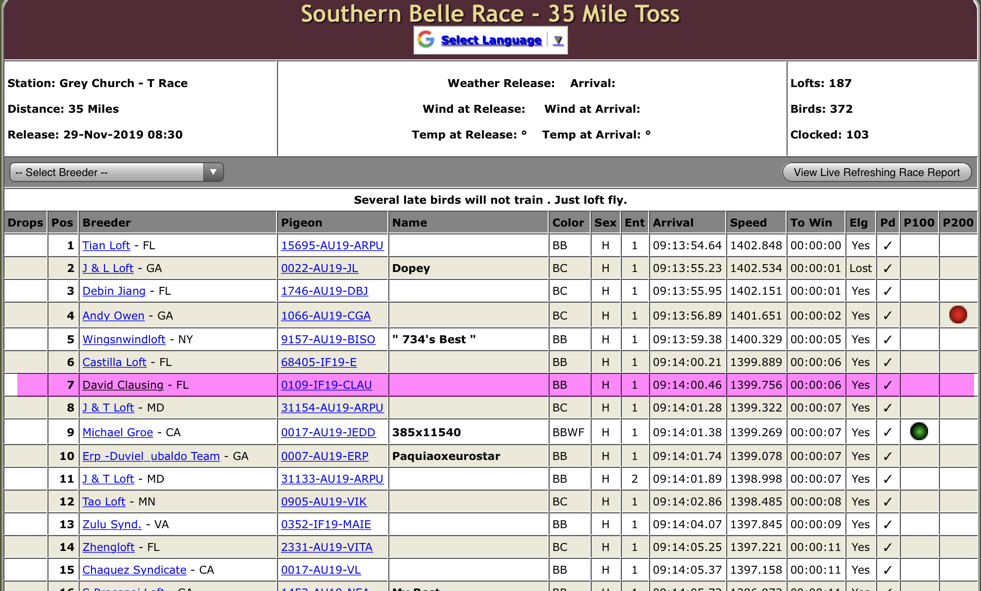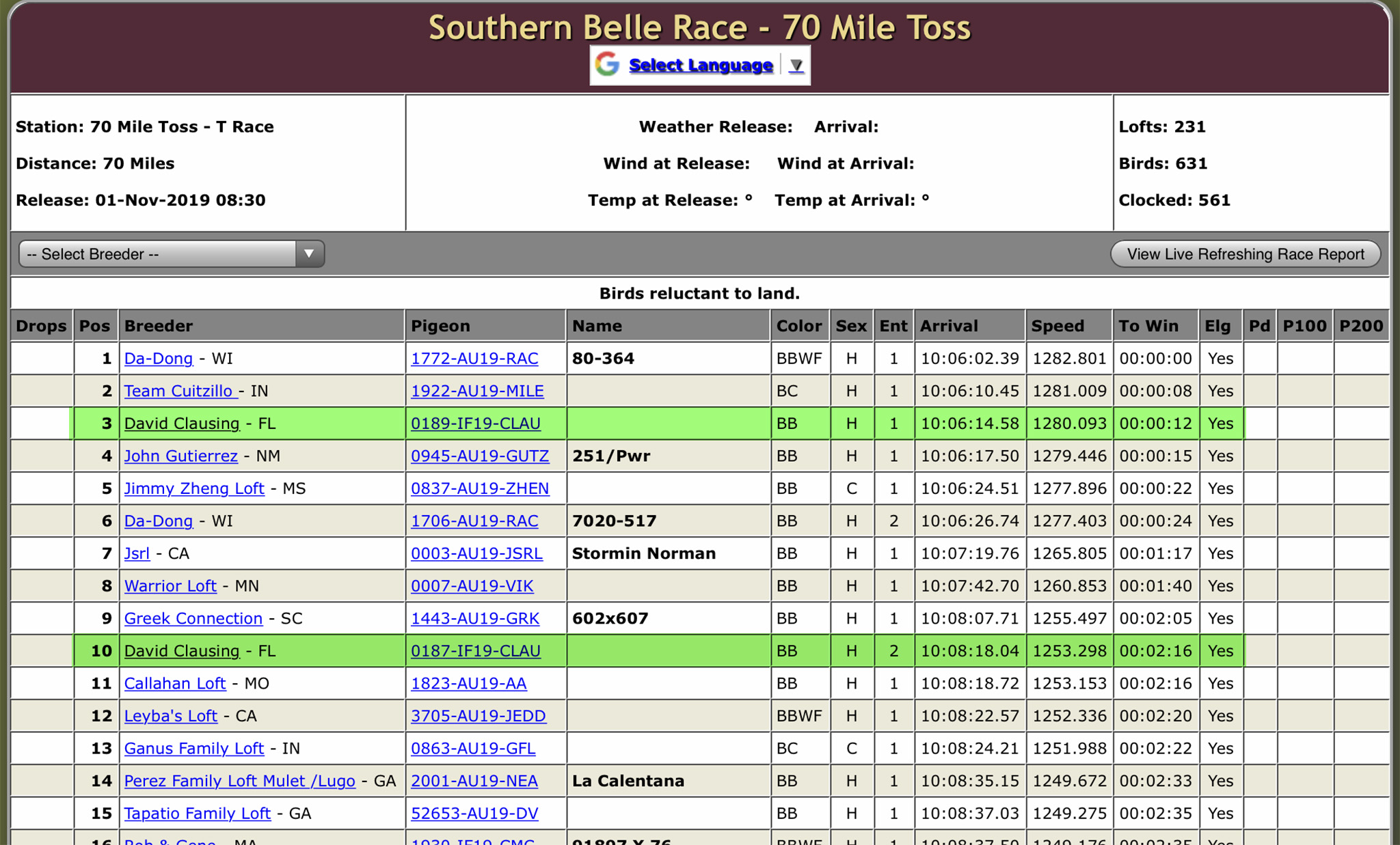 | 11/21/2019 | Florida Pigeon Derby | 112119_fdp |