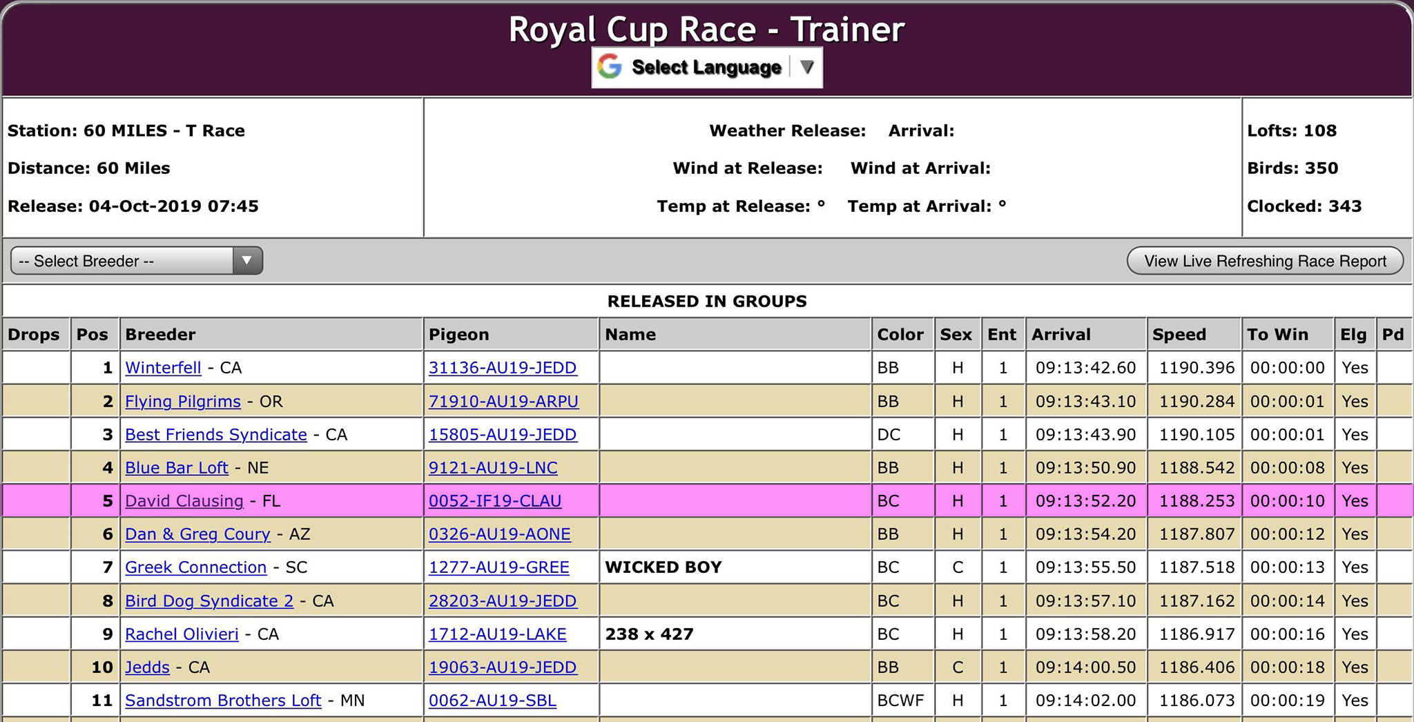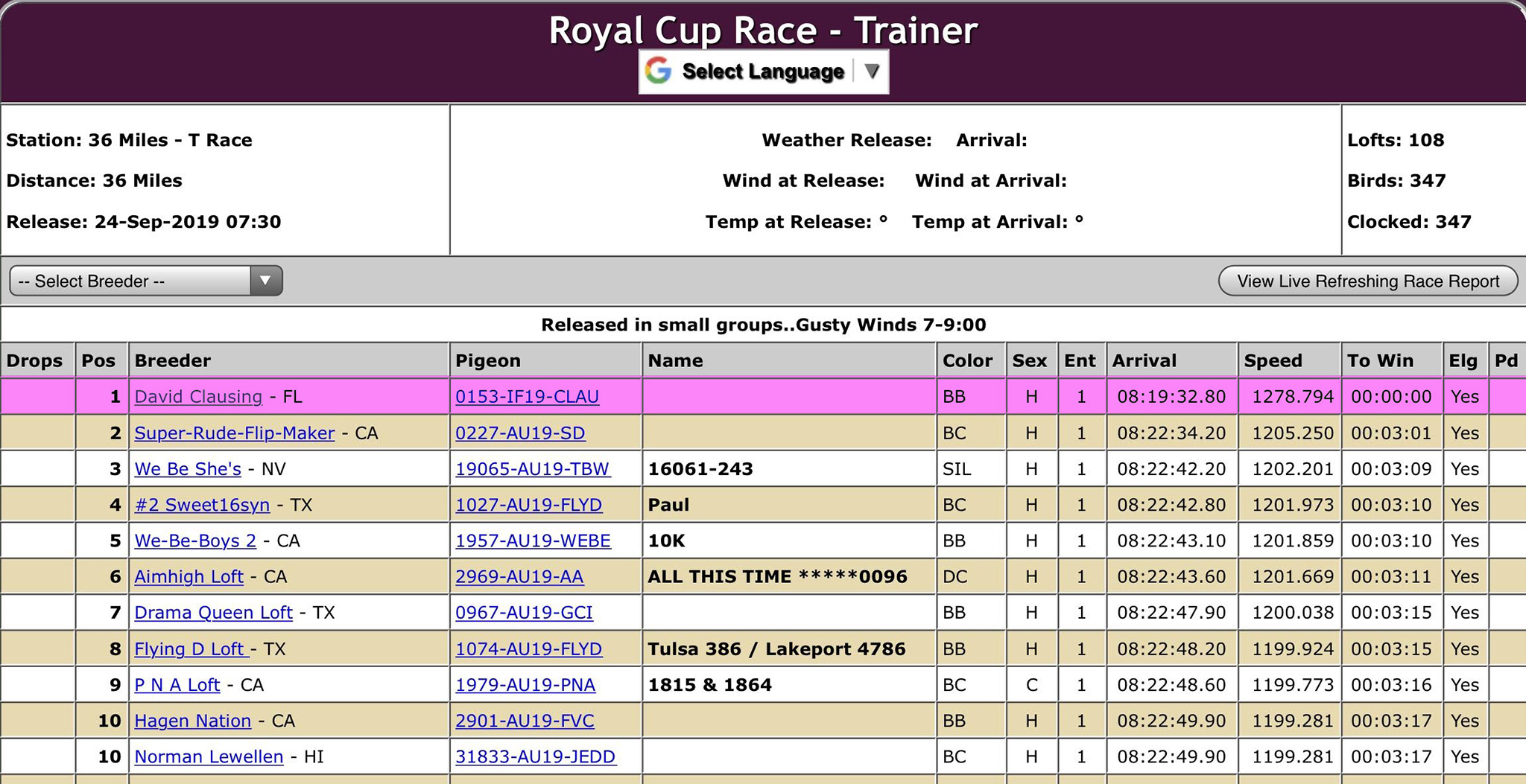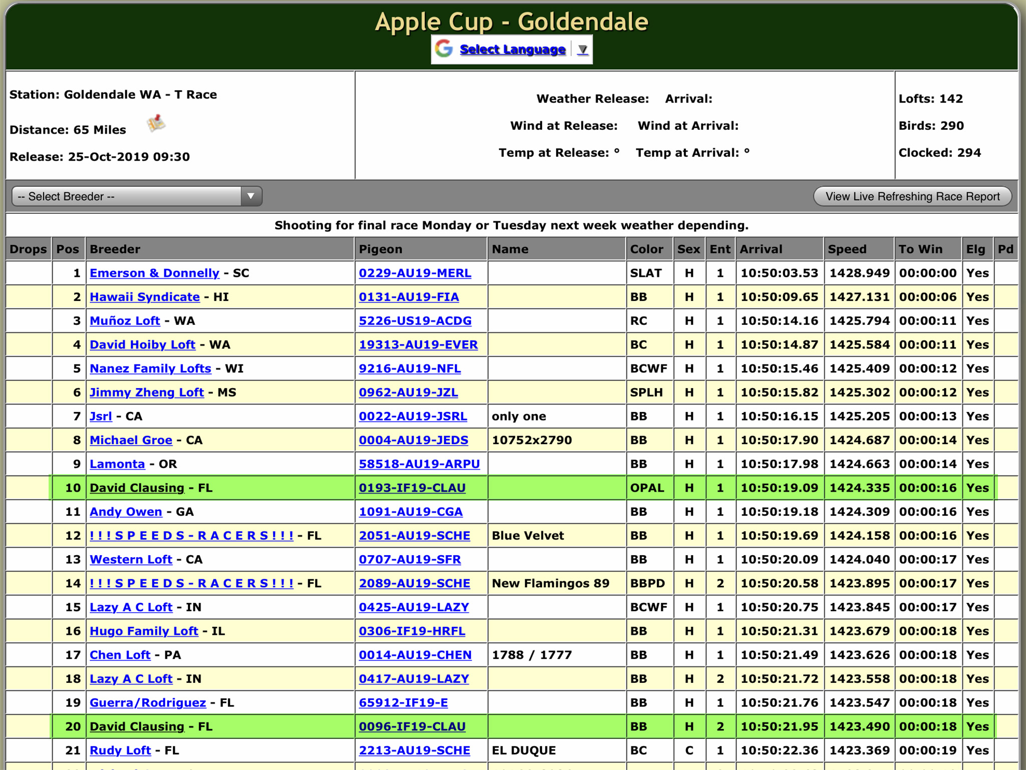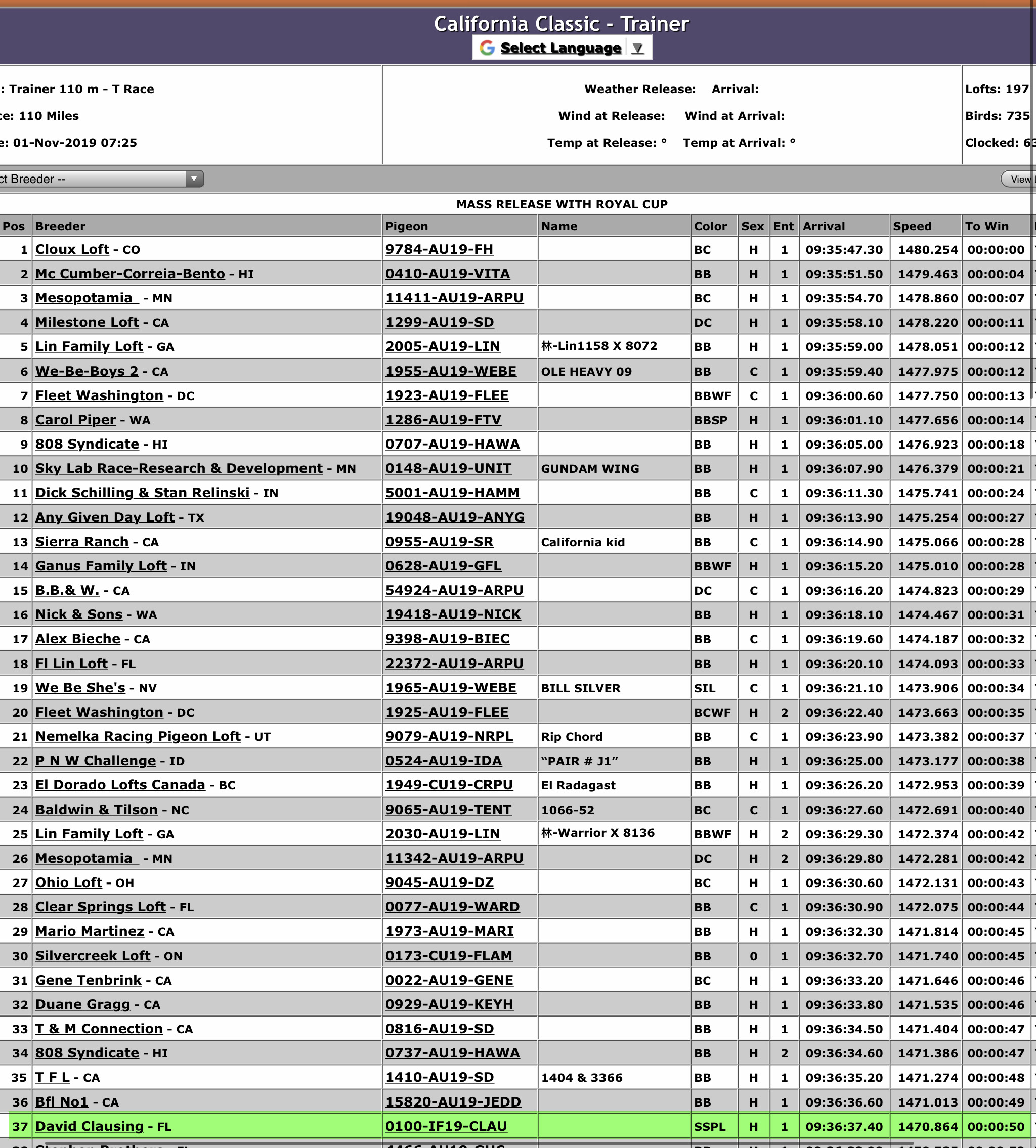 | 11/21/2019 | Florida Pigeon Derby | 112119_fdp |