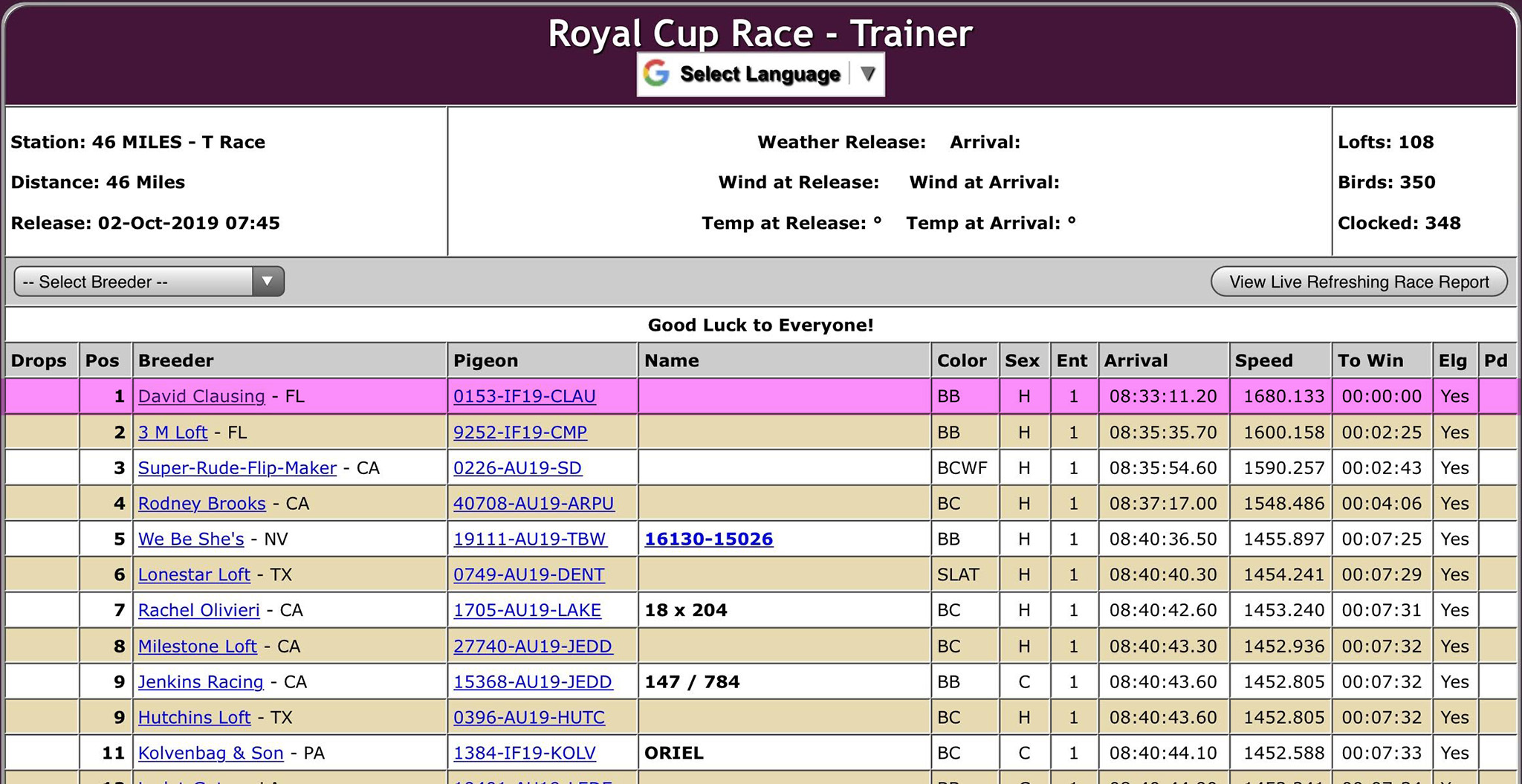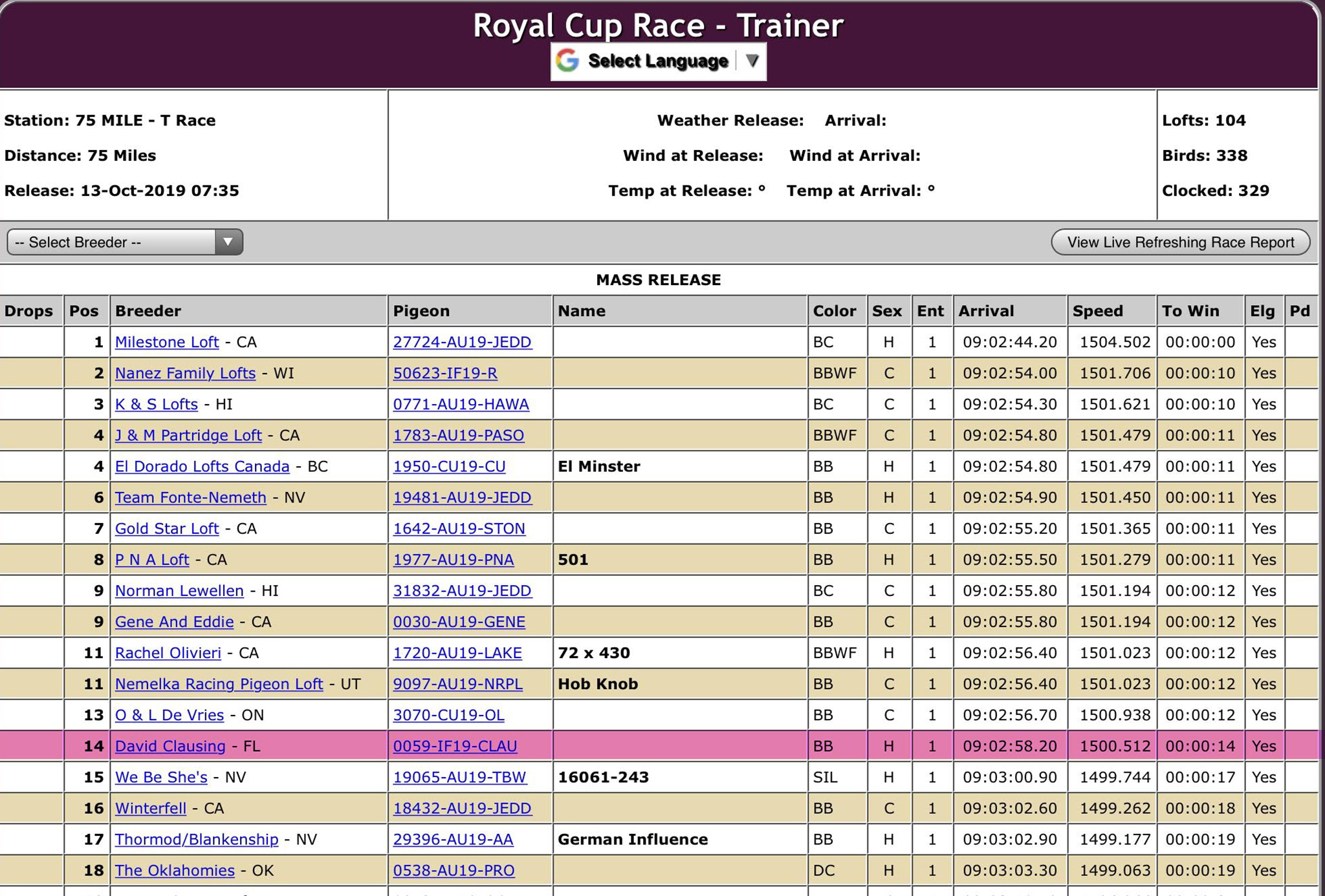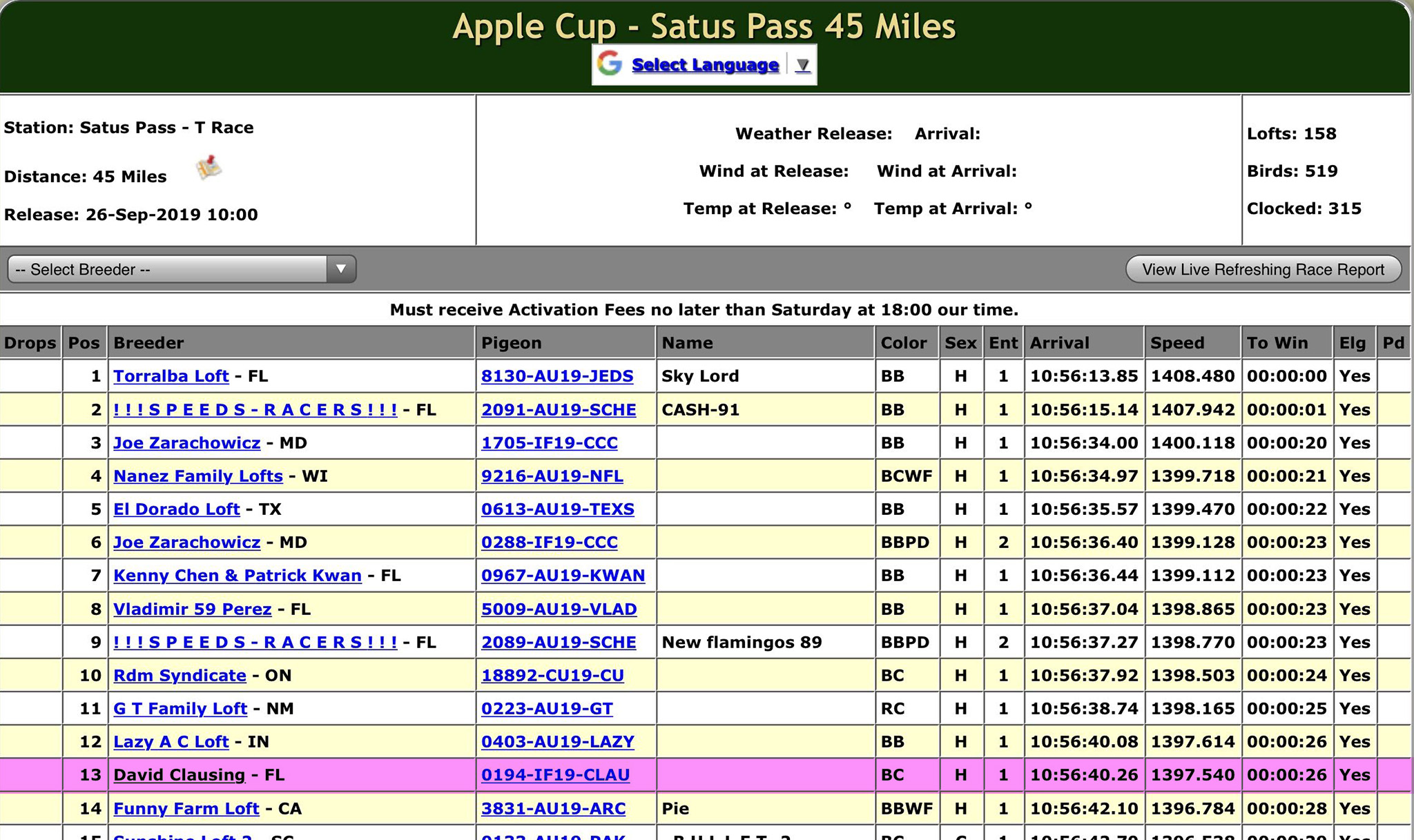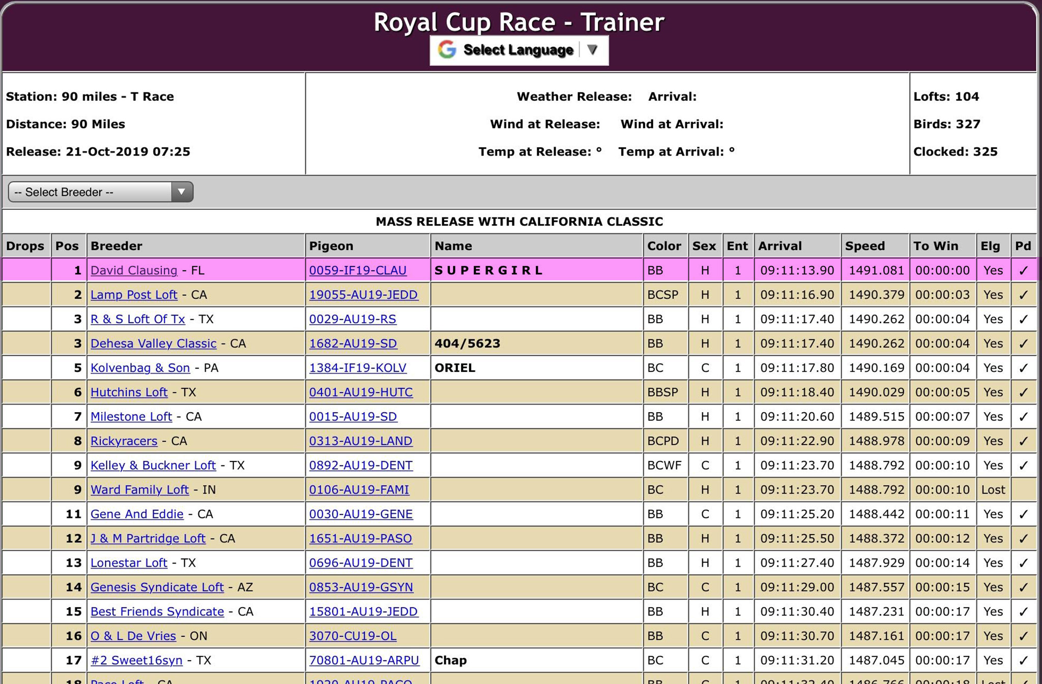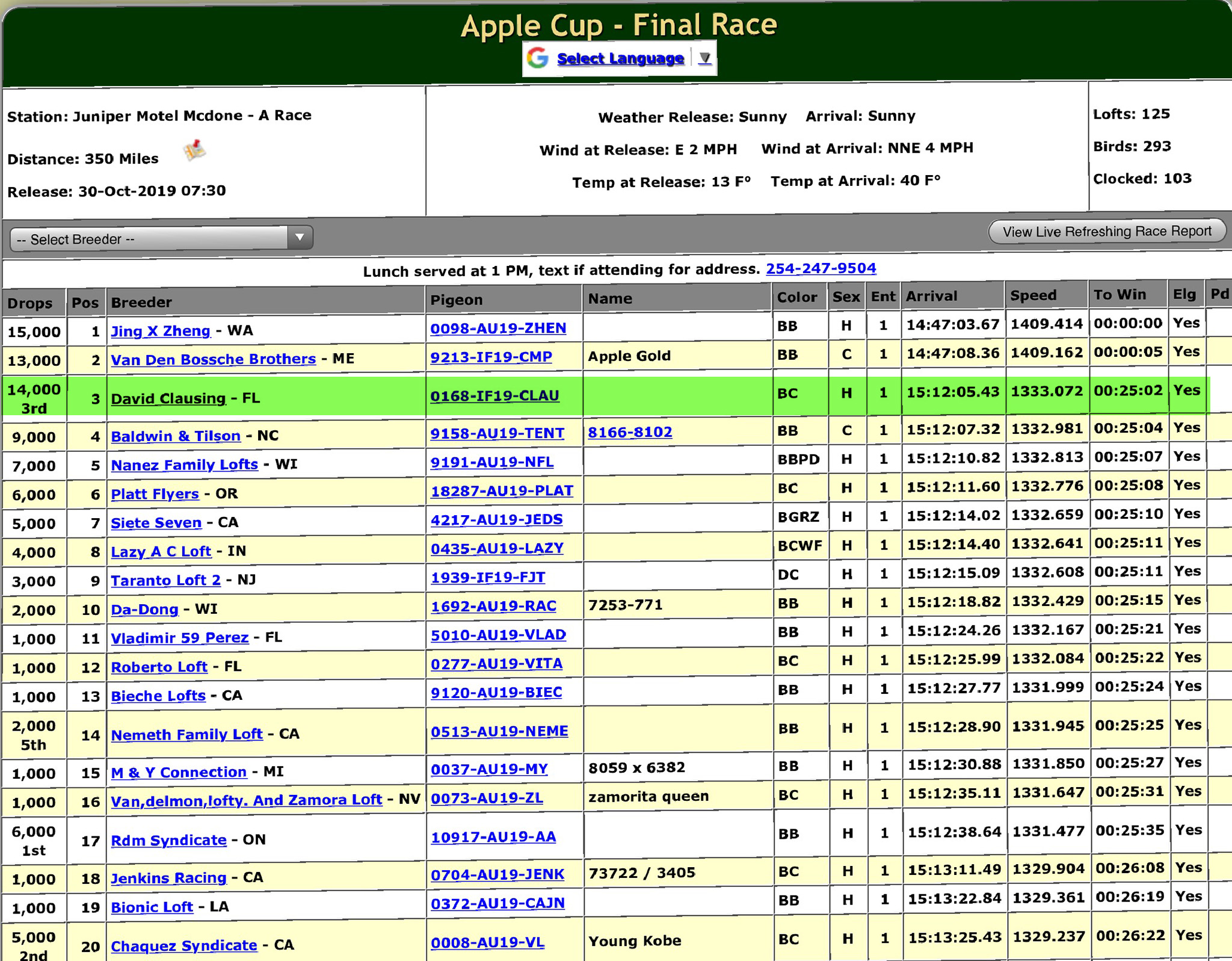 | 11/21/2019 | Florida Pigeon Derby | 112119_fdp |