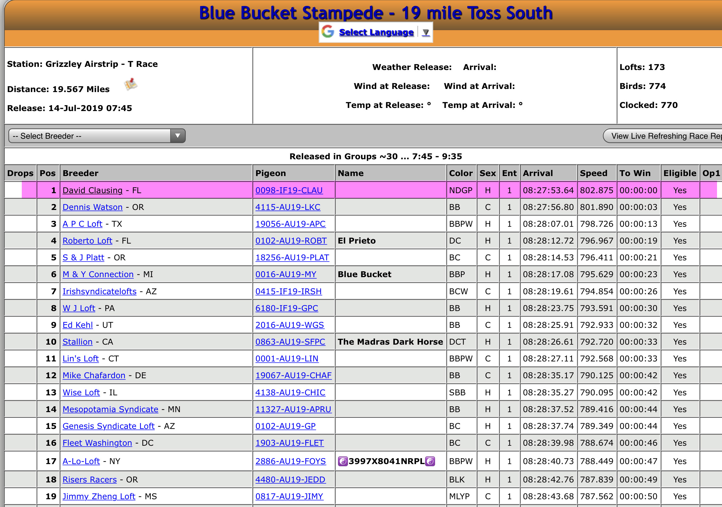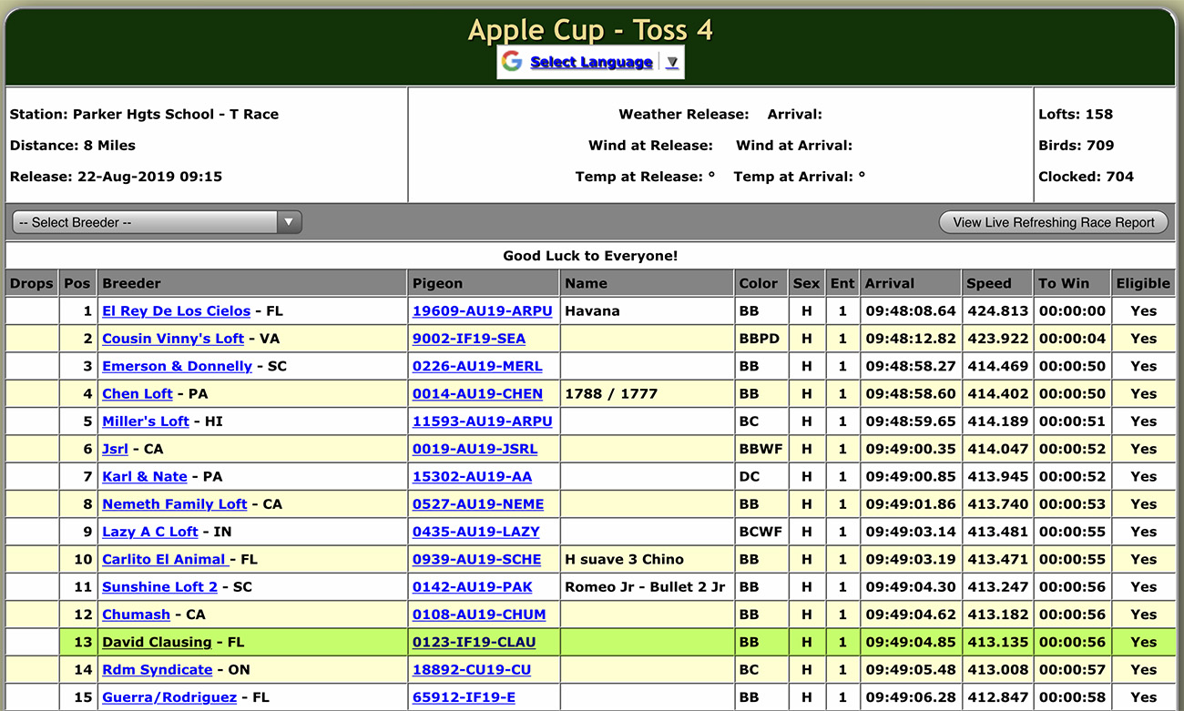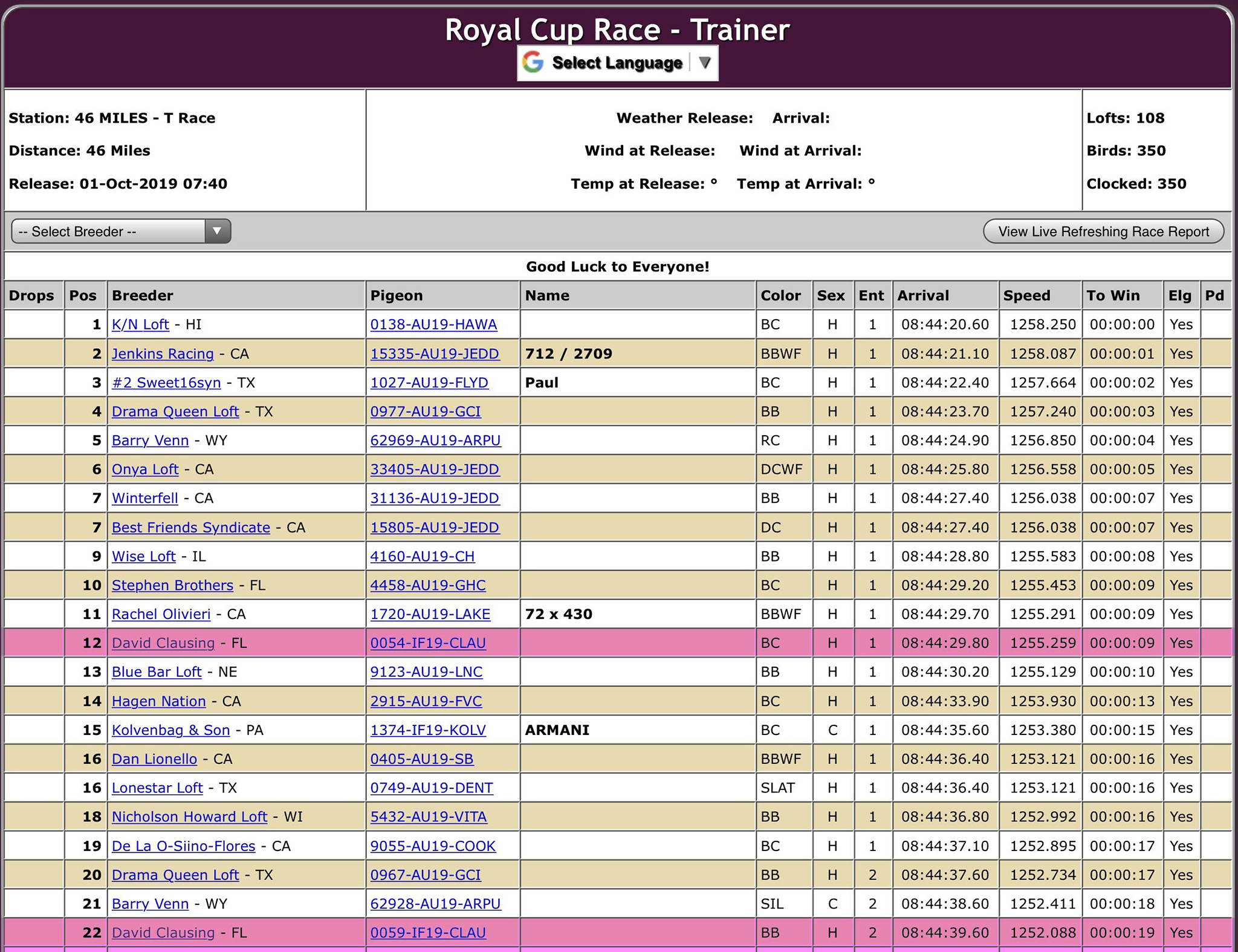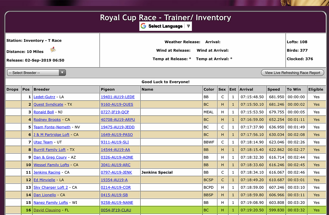 | 11/21/2019 | Florida Pigeon Derby | 112119_fdp |