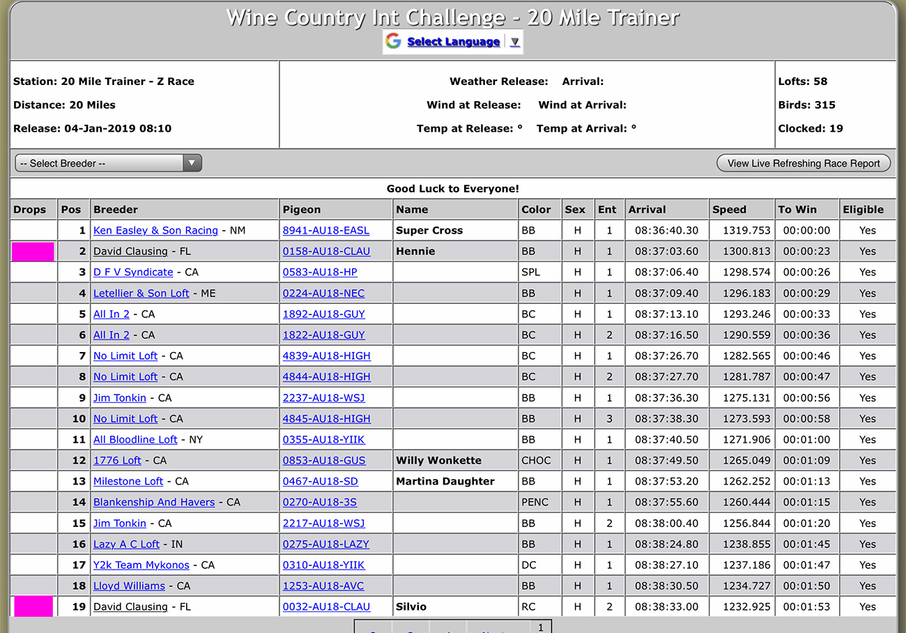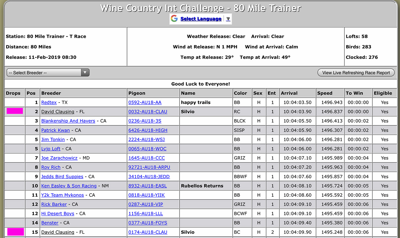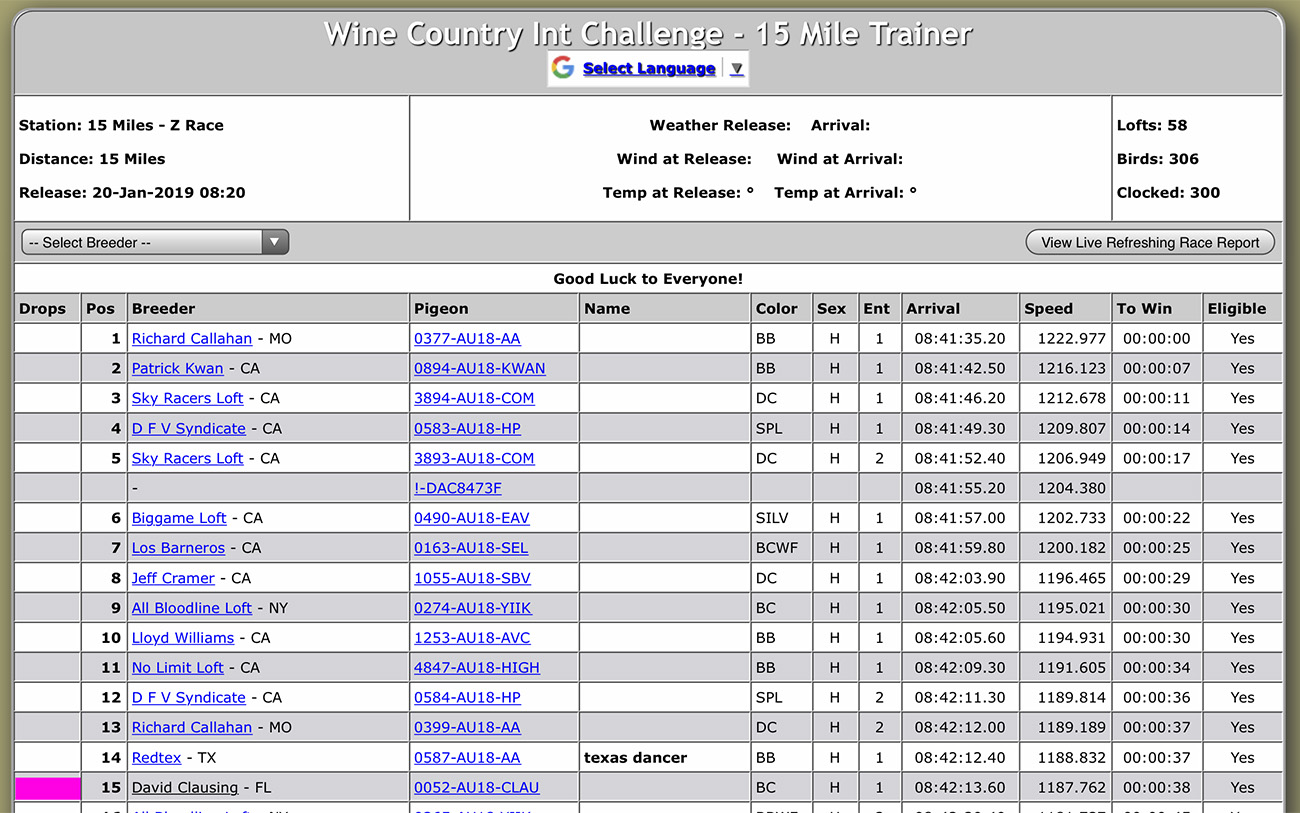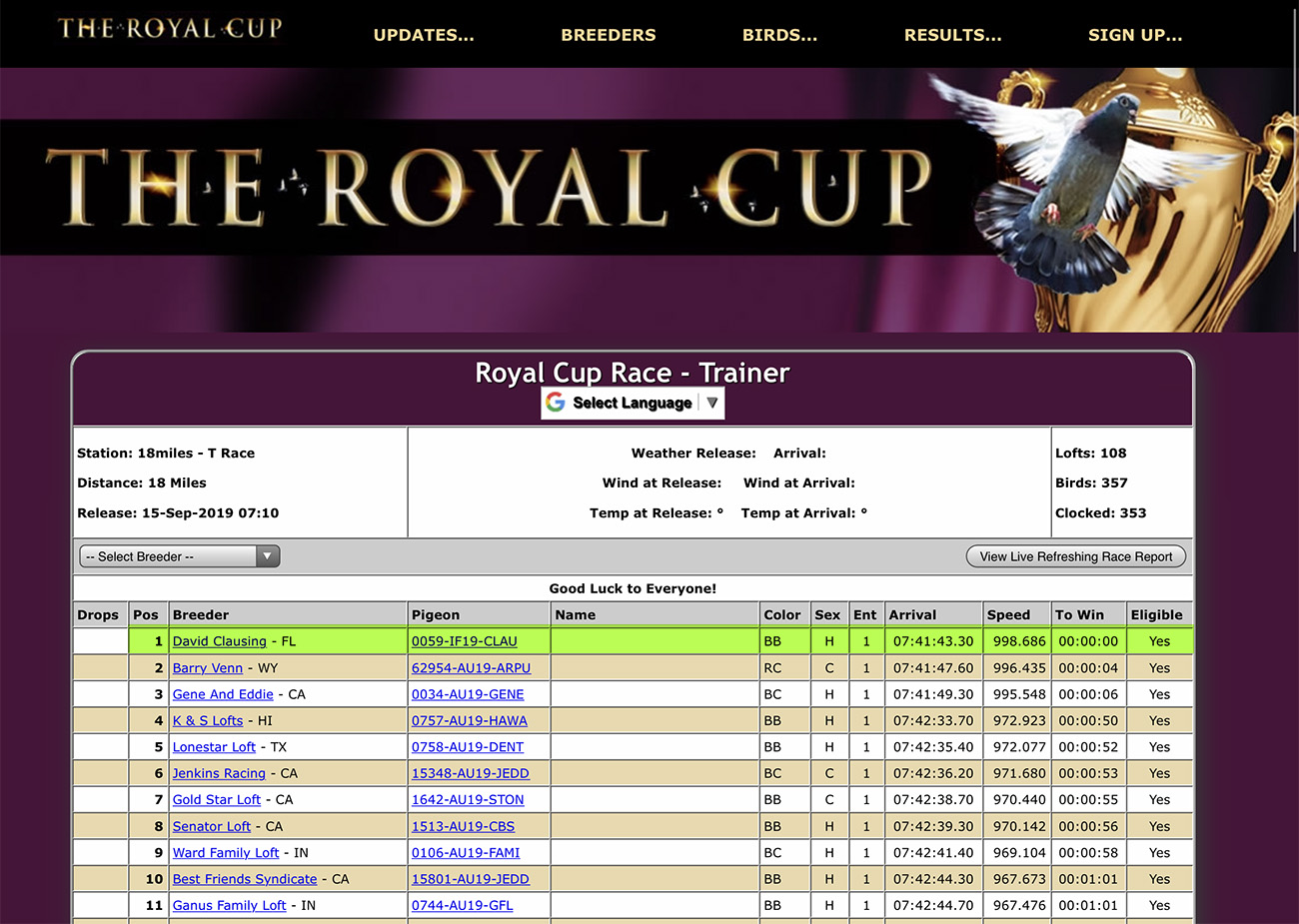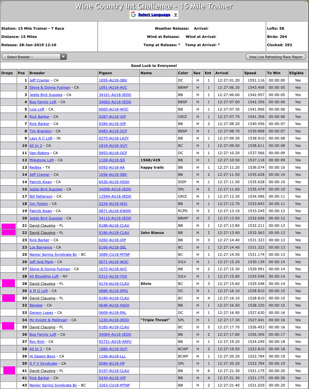 | 11/21/2019 | Florida Pigeon Derby | 112119_fdp |