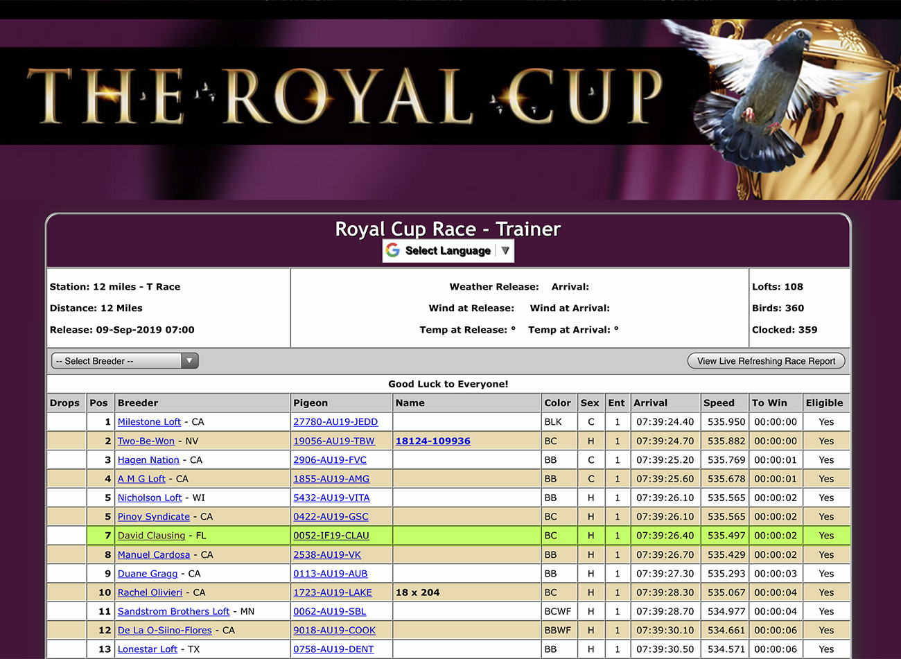 | 09/15/2019 | The Royal Cup - CA. | 091519_trc |