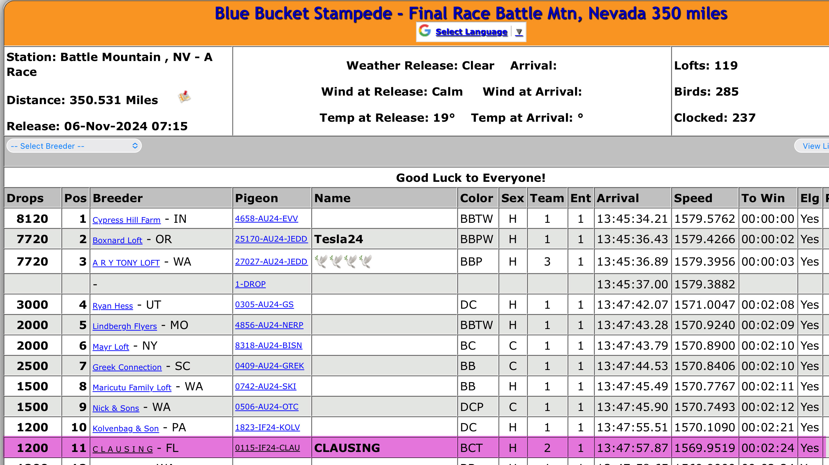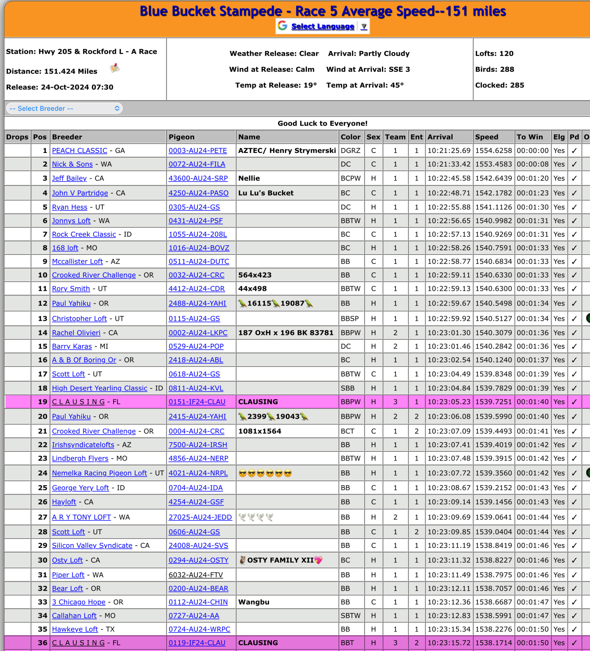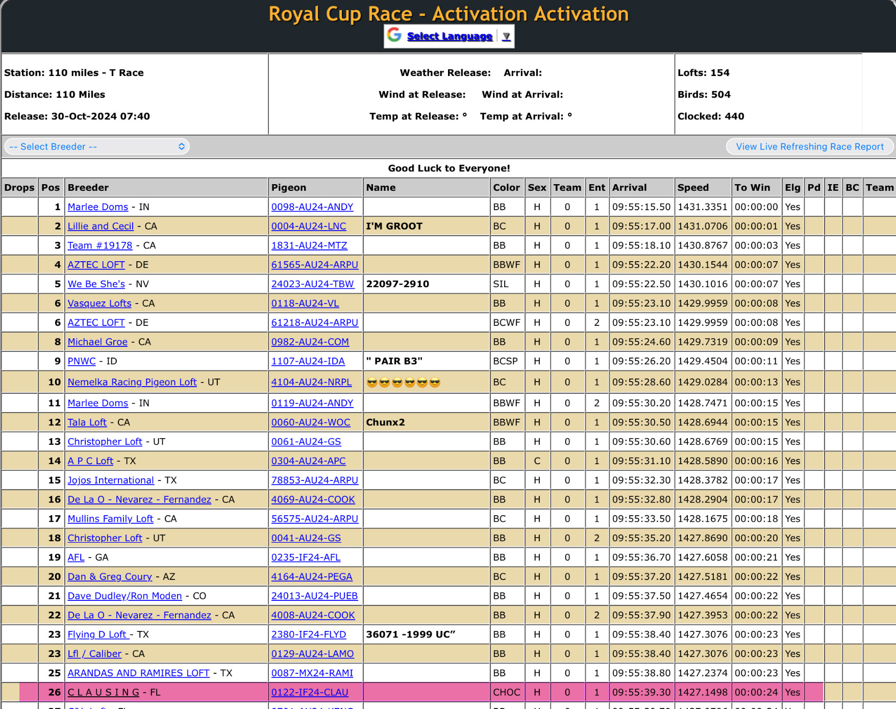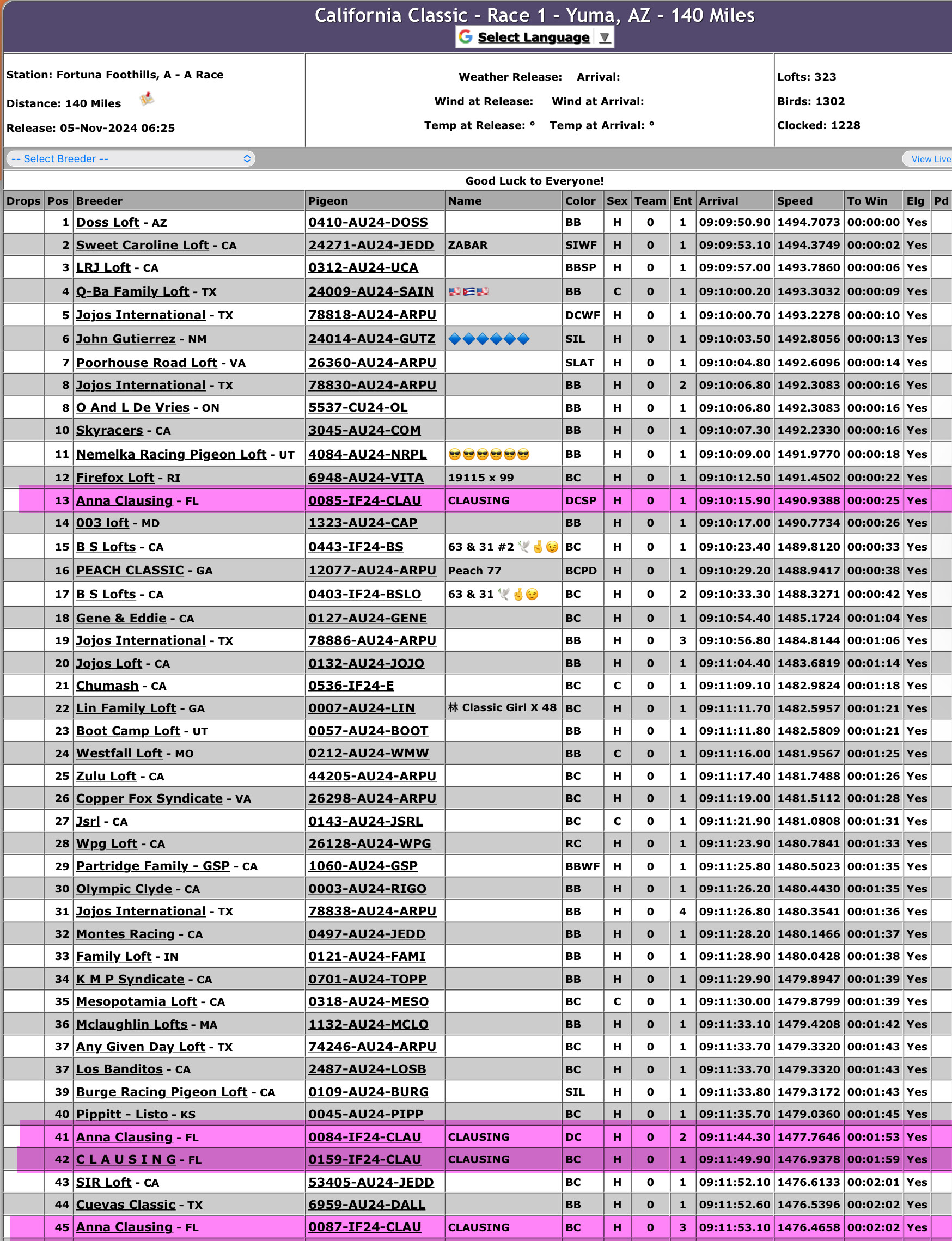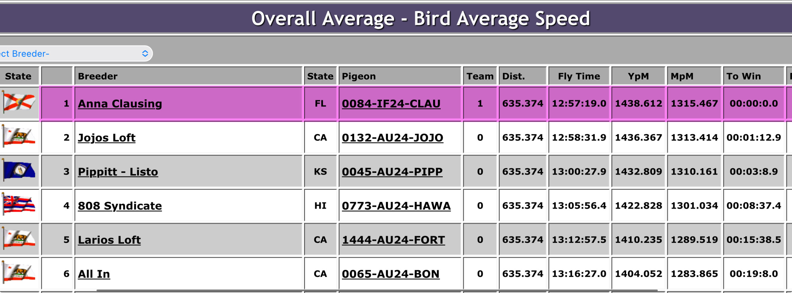 | 02/08/2024 | Florida Pigeon Derby | tdt4 |