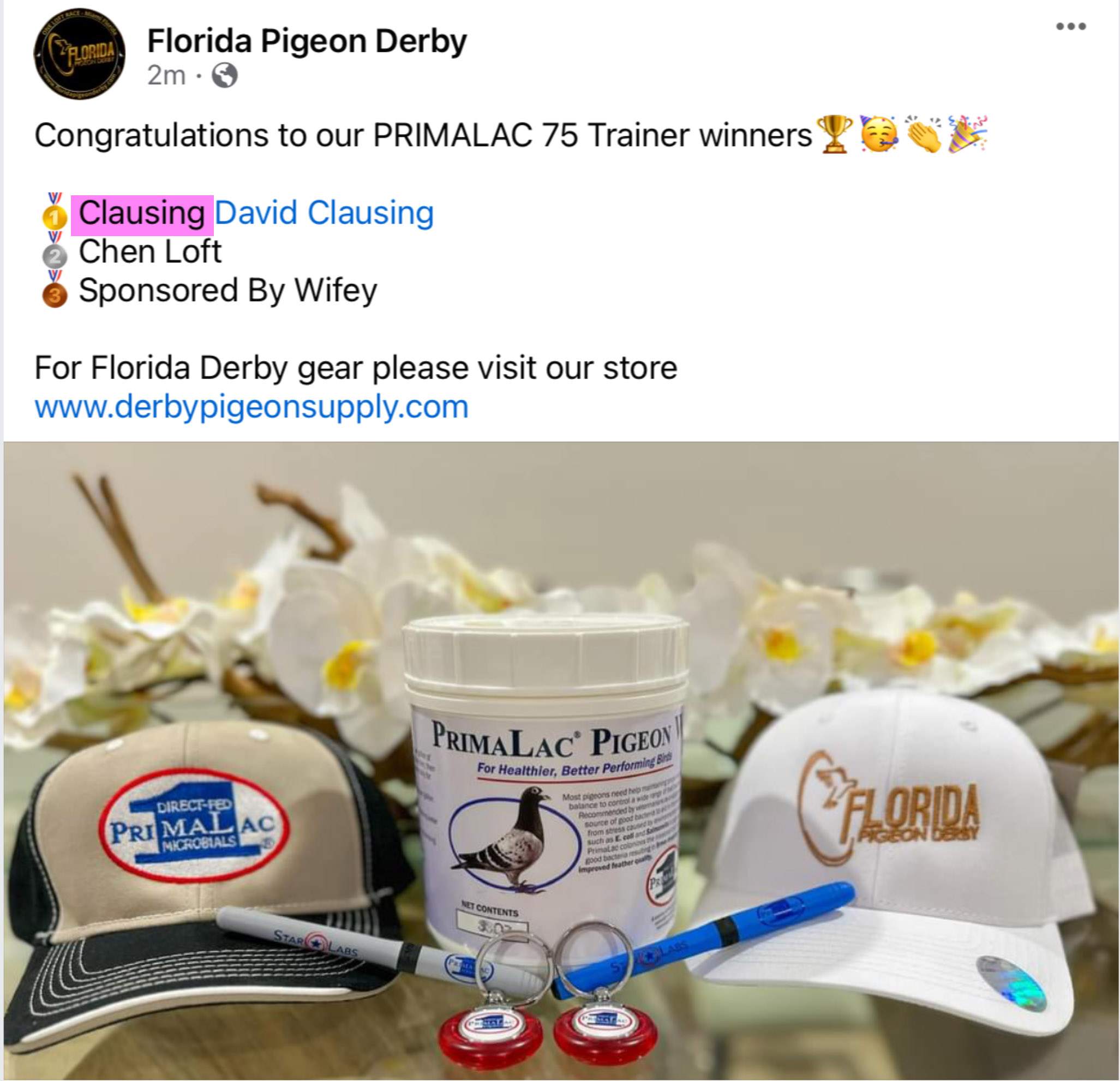| 01/20/2024 | Florida Pigeon Derby | 012024_fpd |