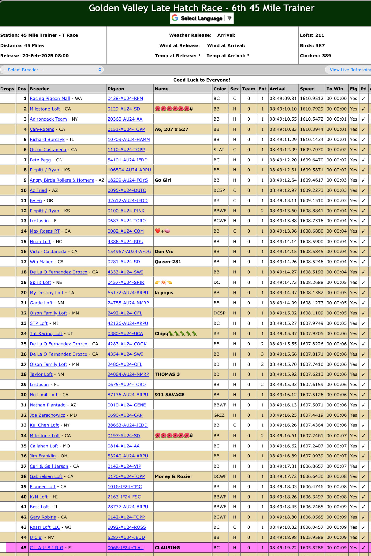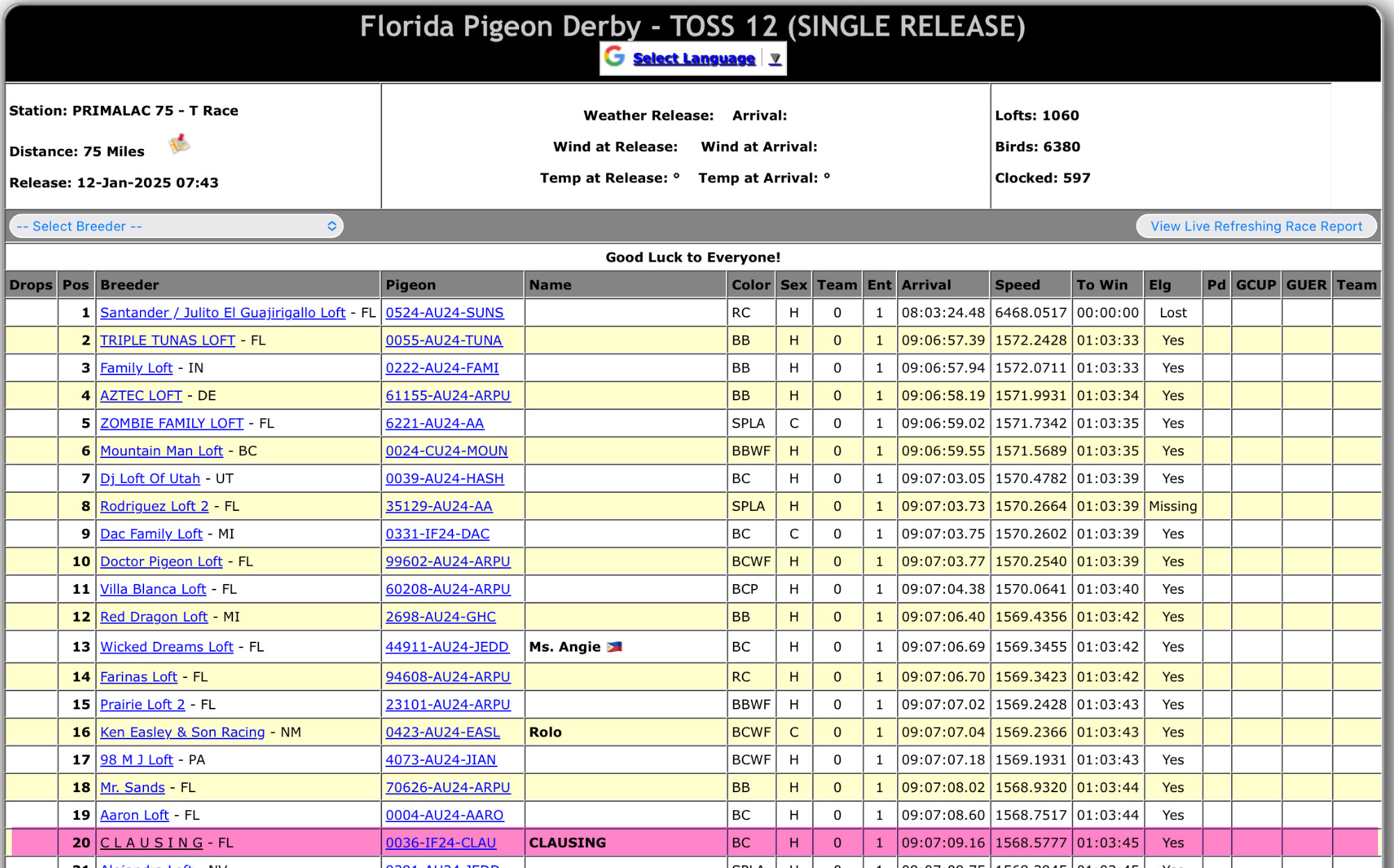 | 02/20/2025 | Florida Pigeon Derby | 022025_fpd |