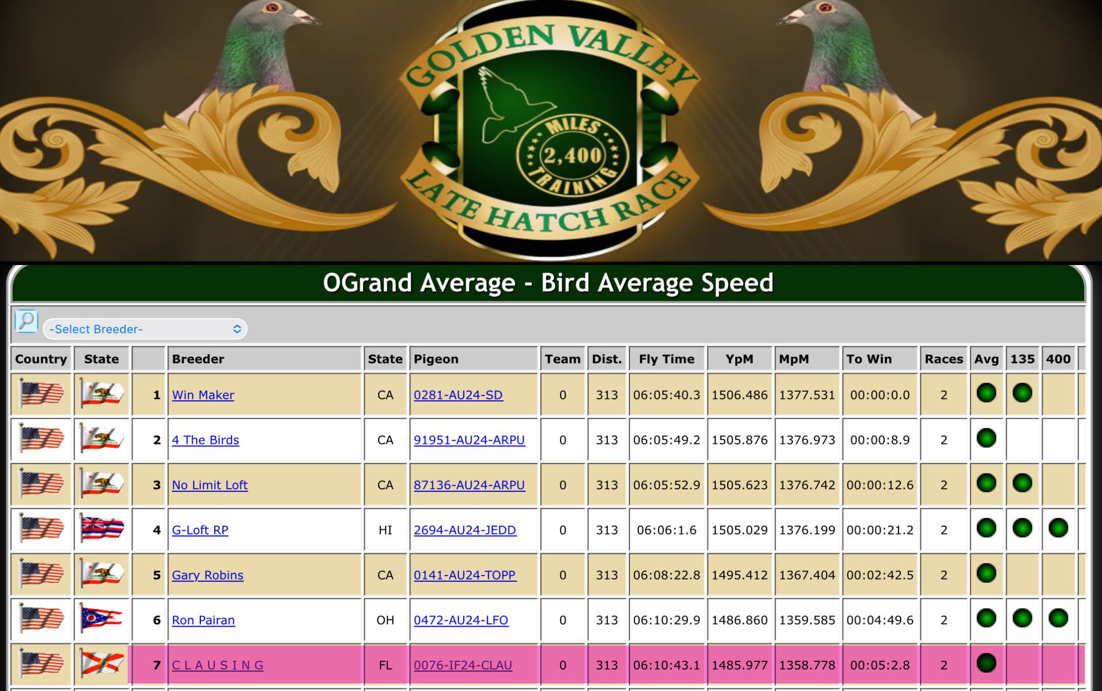 | 04/04/2025 | Florida Pigeon Derby | 040425_fpd |